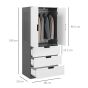 2 Door Wardrobe, Modern Wardrobe with 3 Drawers and Hanging Rod for Bedroom, Grey