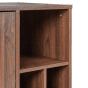 This elegant cabinet blends functionality with traditional charm. Behind the closed doors, you'll find two shelves for organized storage, while the open shelf is perfect for displaying decor. The wine rack holds up to eight bottles, making it ideal for entertaining. Crafted from particle board with a dark wood-look finish and solid wood legs, it combines timeless style with reliable stability.