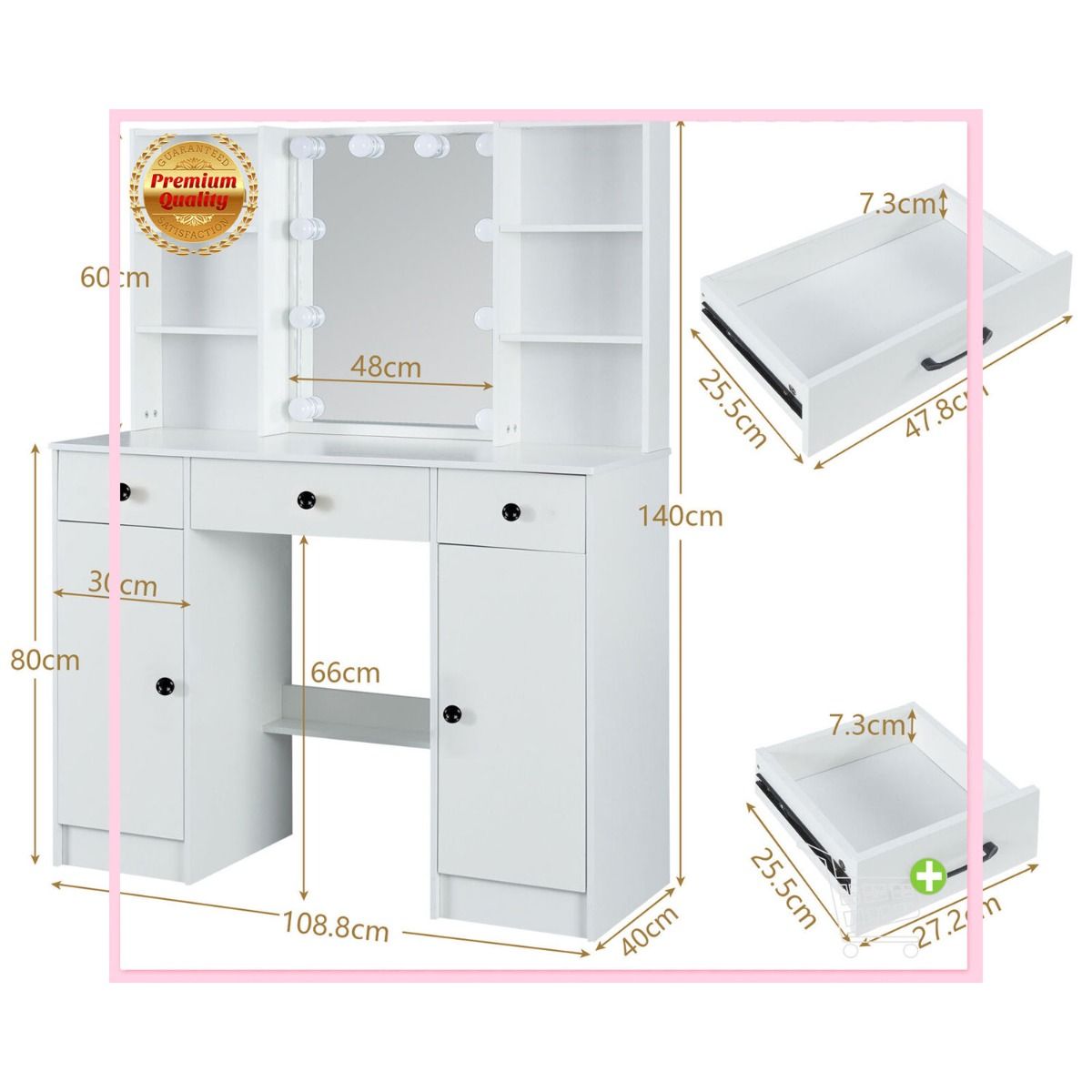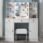 This dressing table has a graceful design with large table top which offers a fantastic storage capacity for all your jewellery ,treasures and makeup. It is not only a great bedroom dresser table but also a good space saver and organizer. The dressing table made from MDF , its strong and solid construction will provide an excellent experience for your home. The beautifully crafted dressing table with stool set is sure to make a big impression on your bedroom. A New day begin with a good makeup and good mood. To realize your princess dream with this dressing table.