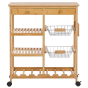 A rustic kitchen cart is a perfect addition to your home, in a nutshell, it is both practical and decorative. Featuring storage for interiors with limited space, it can be easily moved around thanks to the wheels. The wooden table-top can serve multiple options as a countertop or to display canapés or fruit bowls, the drawer is an ideal place to store your utensils, whereas metal baskets are a great spot to hold your lighter items. Details: Color: Light Wood. Main material: Bamboo Wood. Additional material: MDF. Weight: 10 Assembly: Full Assembly Required Wood type: Bambusoideae Wood Origin: China Legs Height: 8