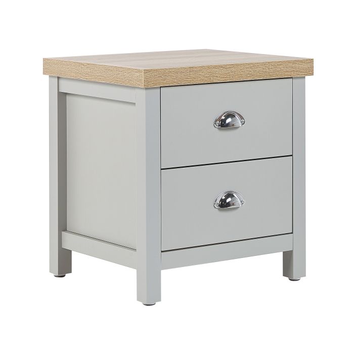 Bedside Table - CLACTON 2 Drawer Nightstand Grey and Silver 45cm