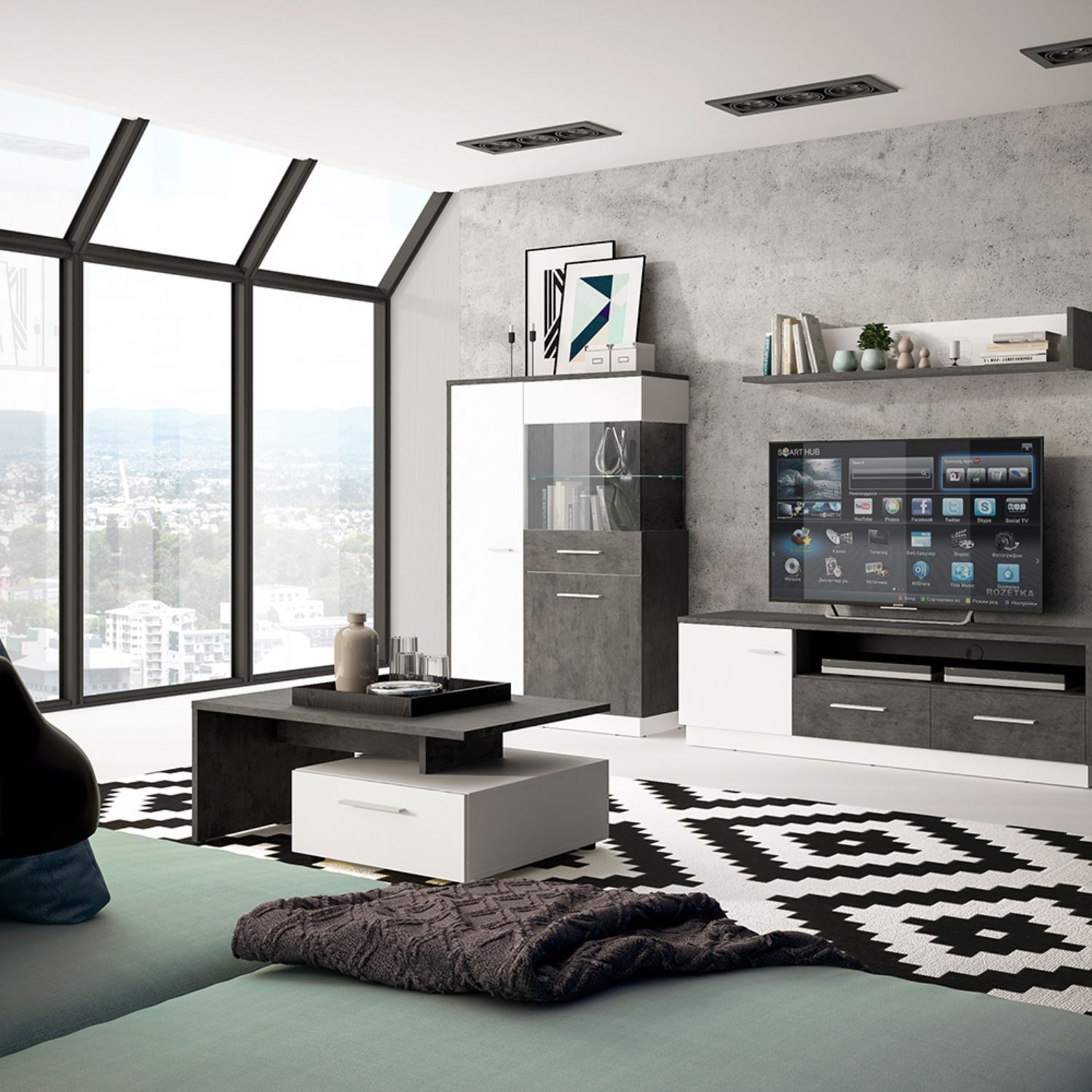 Zingaro 2 drawer coffee table - Slate Grey and Alpine White