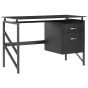 A compact home office desk for any industrial or minimalist space. Sturdy metal frame in black provides a stable base for all the study accessories and equipment, while the tempered glass top gives it a clean, open finish. Two capacious drawers offer plenty of space for notebooks, pens and school supplies. Details: Color: Black. Main material: MDF. Additional material: Tempered Glass, Metal. Weight: 40 Assembly: Full Assembly Required Weight Capacity: 30 Legs Height: 70