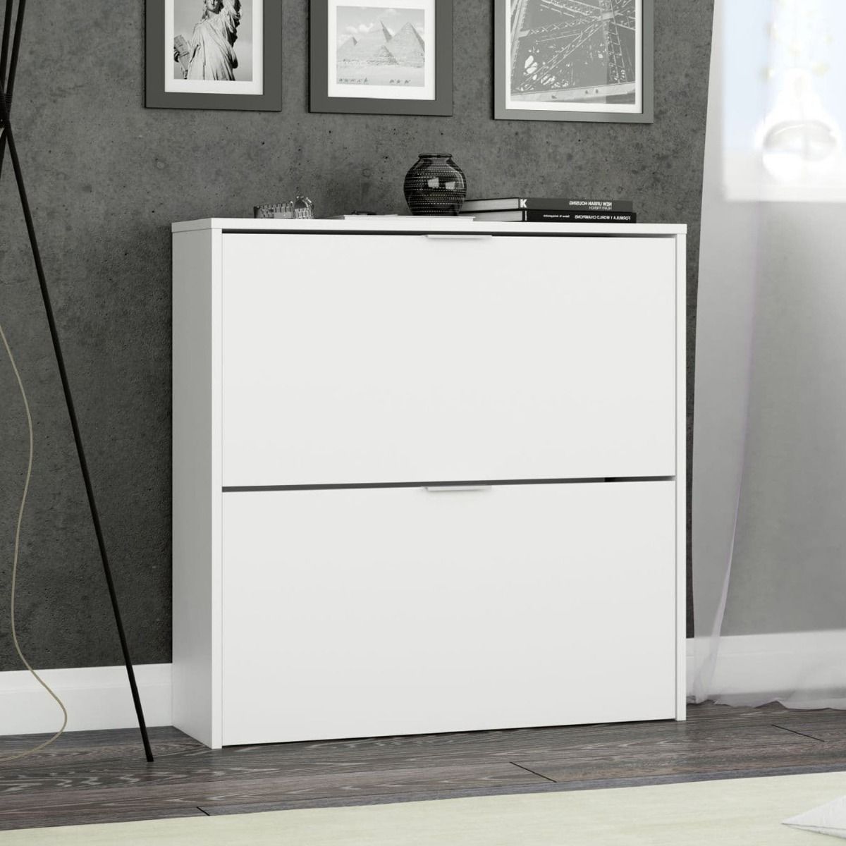 2 Drawer Shoe Cabinet with Revolving Drawers - Matt White