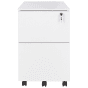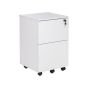 Embrace functional elegance with this practical office cabinet. Clad in pristine white, this piece brings Scandinavian sophistication to your workspace. The two key-locked drawers ensure security for your essentials, while the addition of castors grants the freedom to rearrange your surroundings effortlessly. Let your office space embody the seamless blend of style and convenience with this mobile haven of productivity. Details: Color: White, Black. Main material: Particle Board. Additional material: Metal, Synthetic Material. Weight: 16 Assembly: Full Assembly Required Legs Height: 5