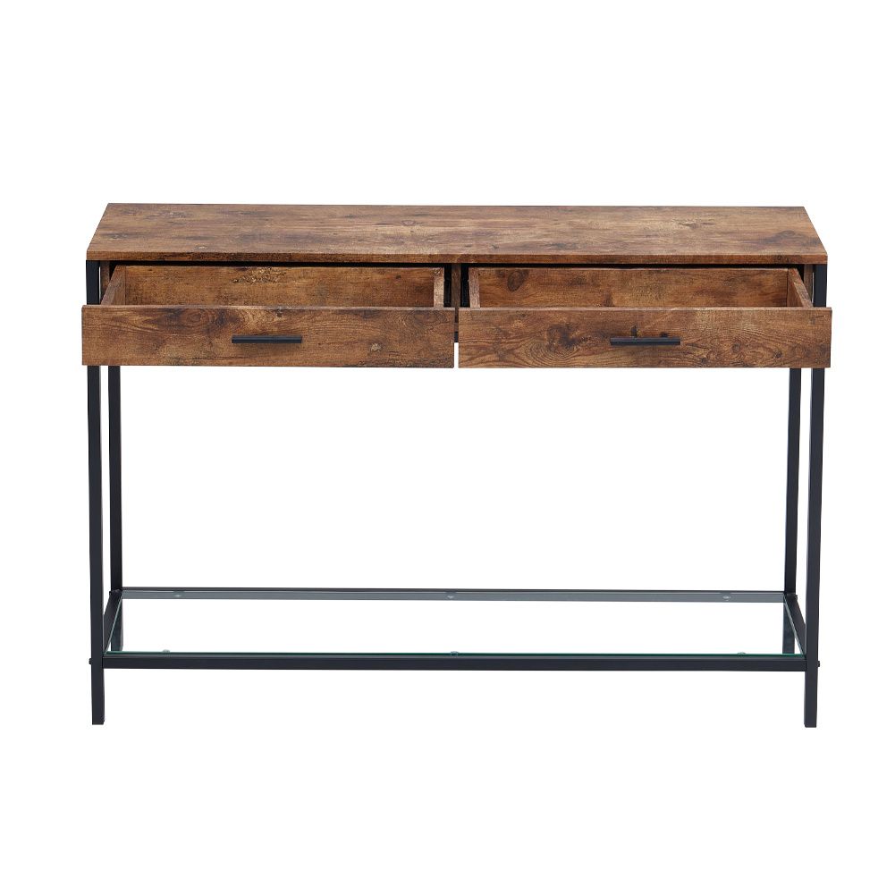 2 Drawers Console Table Storage Stand With Glass Shelf