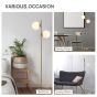 2 Glass Shade Floor Lamp Metal Pole Cool Modern Decorative w/ Floor Switch Home Office Furnishing Gold