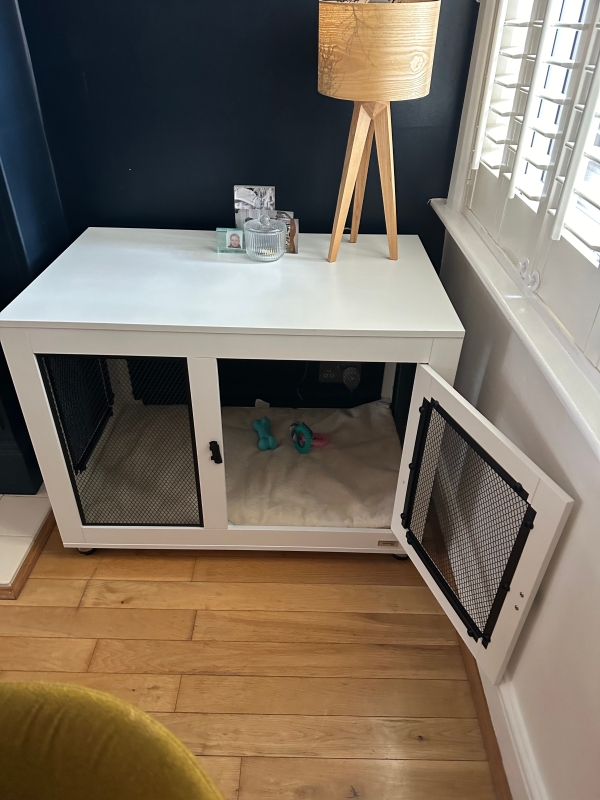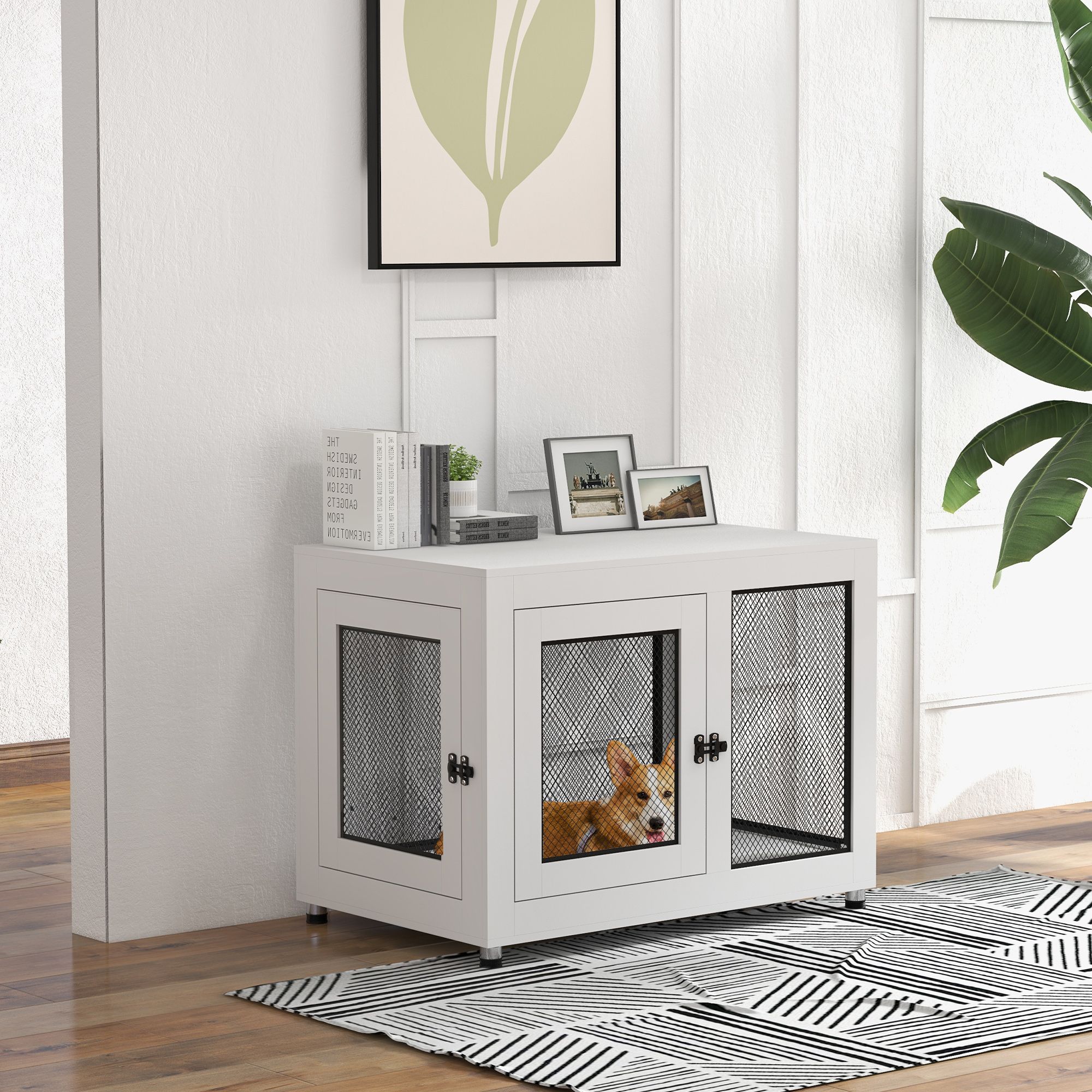 2-in-1 Dog Cage & Side Table, with Two Doors, Cushion, for Large Dogs
