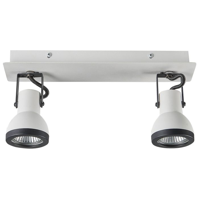 Hang this lamp on your ceiling to light up your living space or bedroom. The rectangular rail features 2 spotlights that can point the light in the direction you select, so you'll be able to use this as a reading or task light. The piece is made out of durable iron, which makes them easy-care and long-lasting. White colour combined with black parts makes the lamp fit any modern, industrial decor styles. Details: Color: White, Black. Main material: Iron. Weight: 0.6 Assembly: Requires Installation