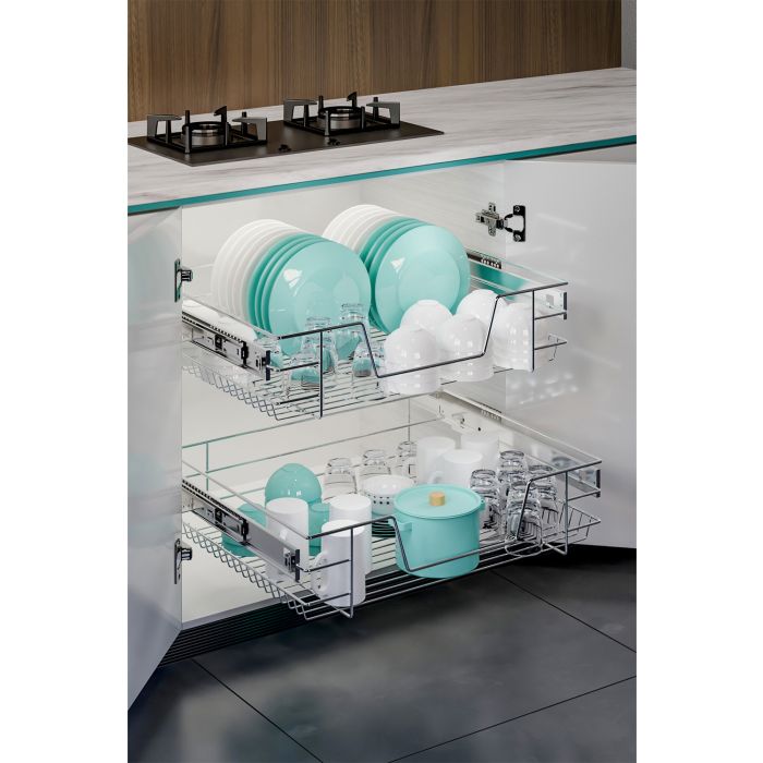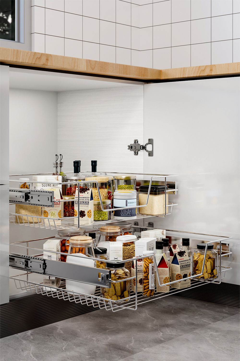 Elevate your cabinet storage with pull-out baskets. Chrome-finished stainless steel ensures durability and style, expanding your space seamlessly. Resistant to heat and deformation, they offer lasting organization and elegance.
