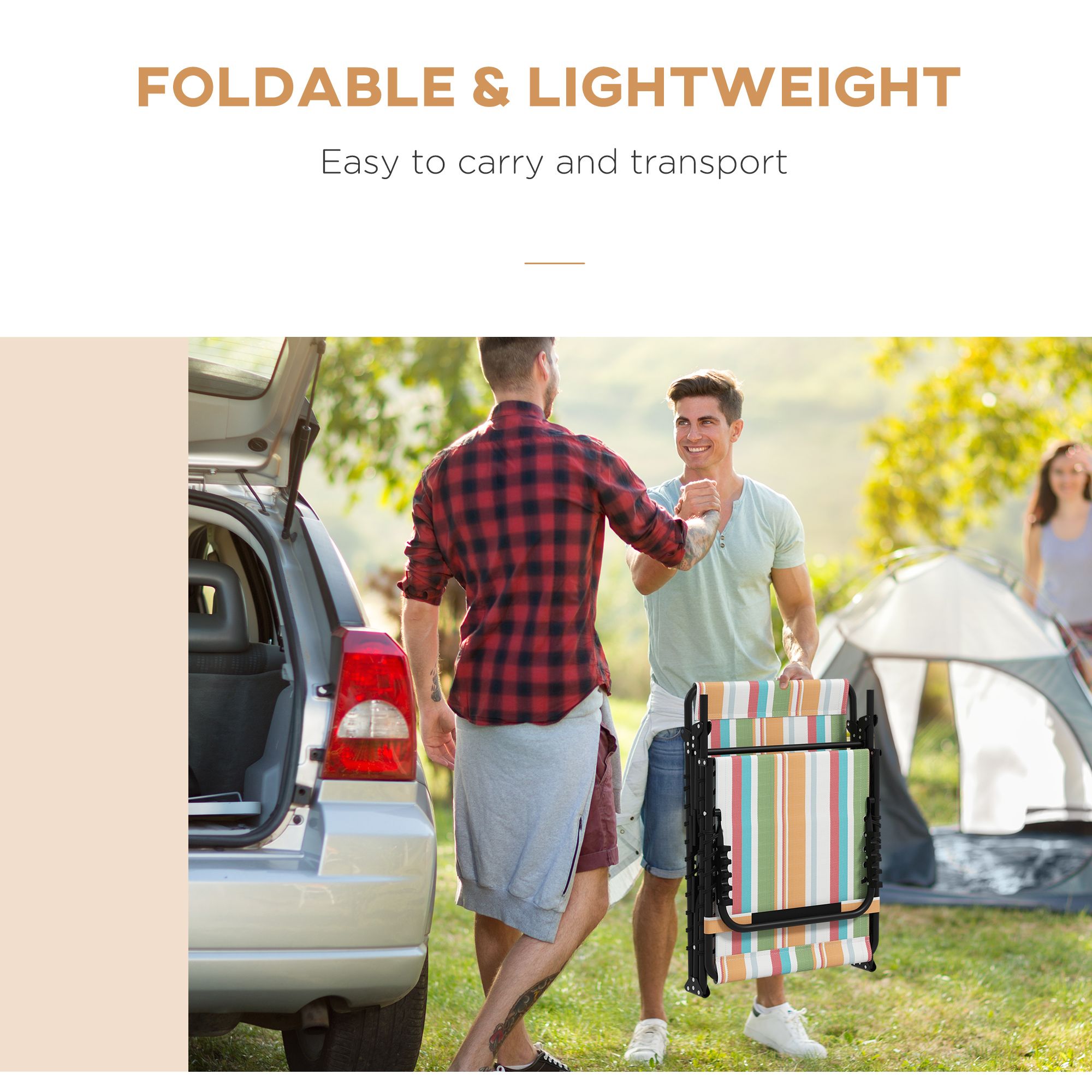 2 Pcs Folding Sun Lounger Beach Chaise Chair Garden Cot Camping Recliner with 4 Position Adjustable Multicolored