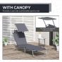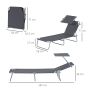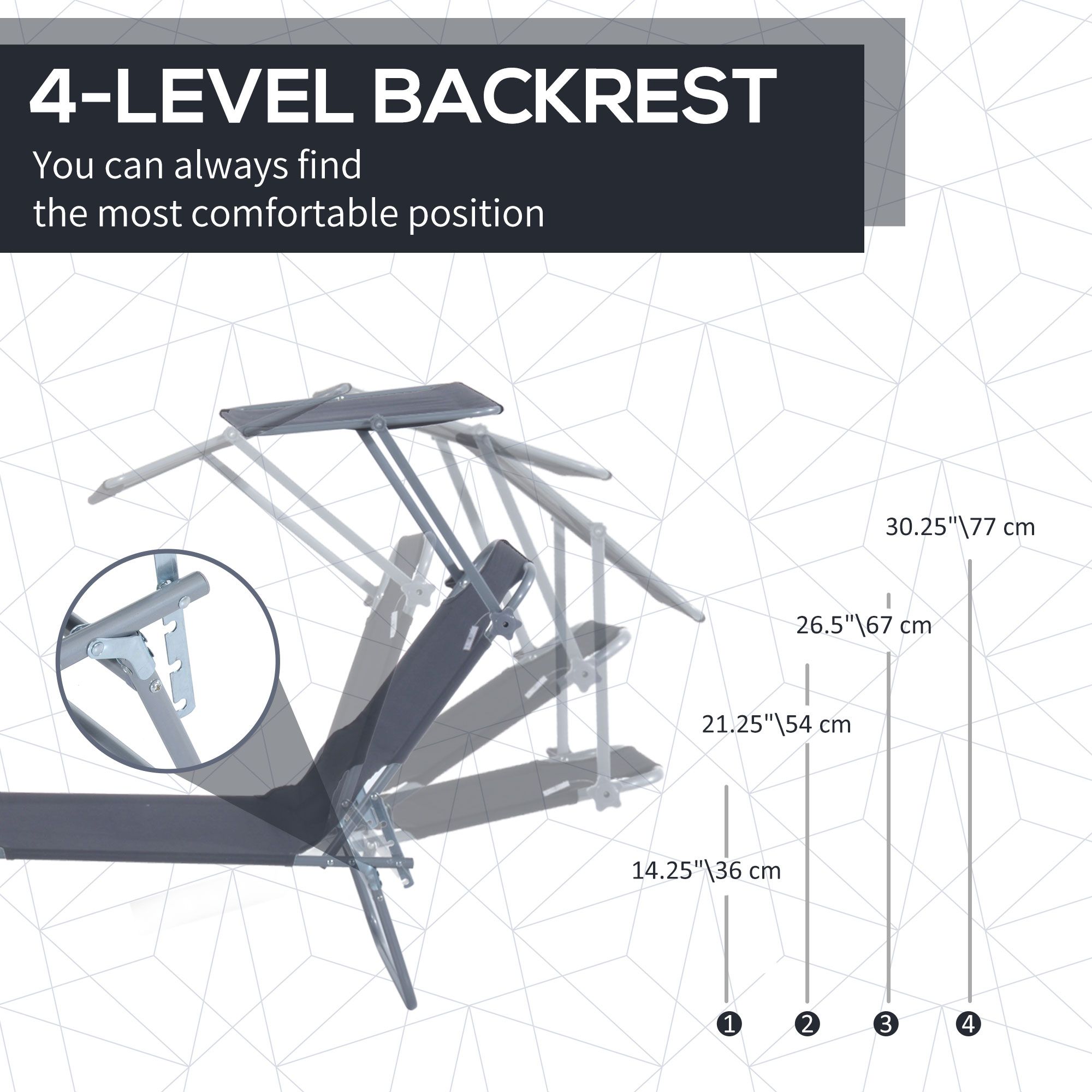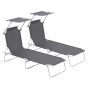 2 Pcs Outdoor Foldable Sun Lounger Set w/ Removeable Shade Canopy, Patio Recliner Sun Lounger w/ Adjustable Backrest w/ Mesh Fabric, Grey