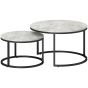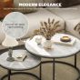 2 Pcs Stacking Coffee Table Set w/ Steel Frame Marble-Effect Top Foot Pads Nest of Tables Storage Display Black/Grey