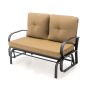 2-Person Outdoor Glider Bench with Cushions and Rustproof Steel Frame-Beige