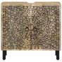 This handy bathroom furniture set, featuring spacious storage space, is an excellent addition to your bathroom, giving it a tidy and striking appearance! Solid mango wood: Solid mango wood is a strong, tropical hardwood that makes sturdy furniture. Its beautiful wood grains make every piece of furniture slightly different from the next. Ample storage space: The wooden bathroom furniture provides various storage options and spacious space for you to store items in your bathroom. Space-saving design: The vanity mirror can be wall-mounted easily to save floor space. The top of the bathroom cabinet is ideal for placing the sink so that you can fully utilise the vacant space under the sink. Clear image: The glass mirror face provides a fine and non-distorted reflection, so it is suitable for making up, shaving or checking the suit before going out. Warning:To prevent it from tipping over, this product must be used with the provided wall attachment device. Good to know:Each item is unique with variations in colours and grains. The delivery is random, ensuring the exclusivity and individuality of your product.