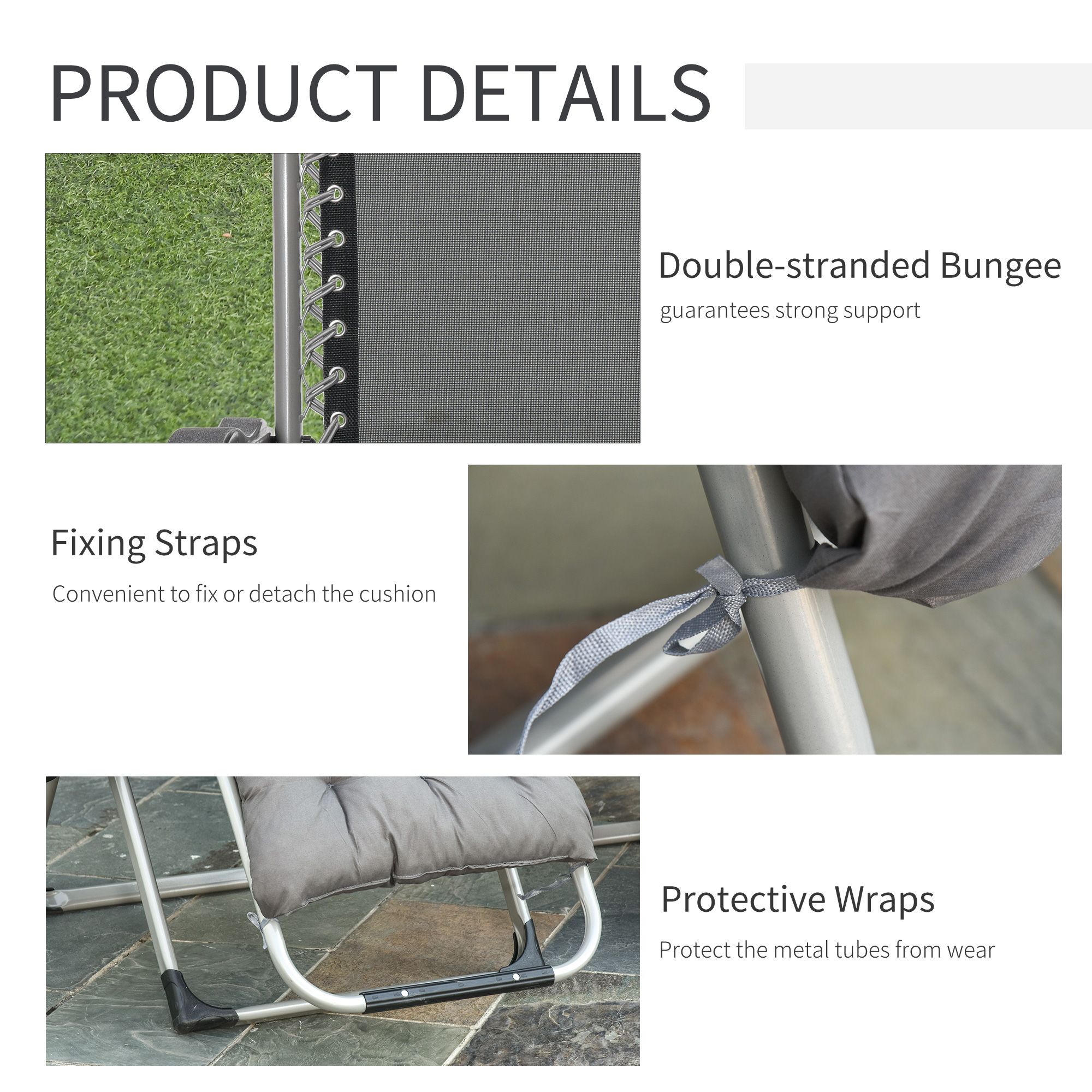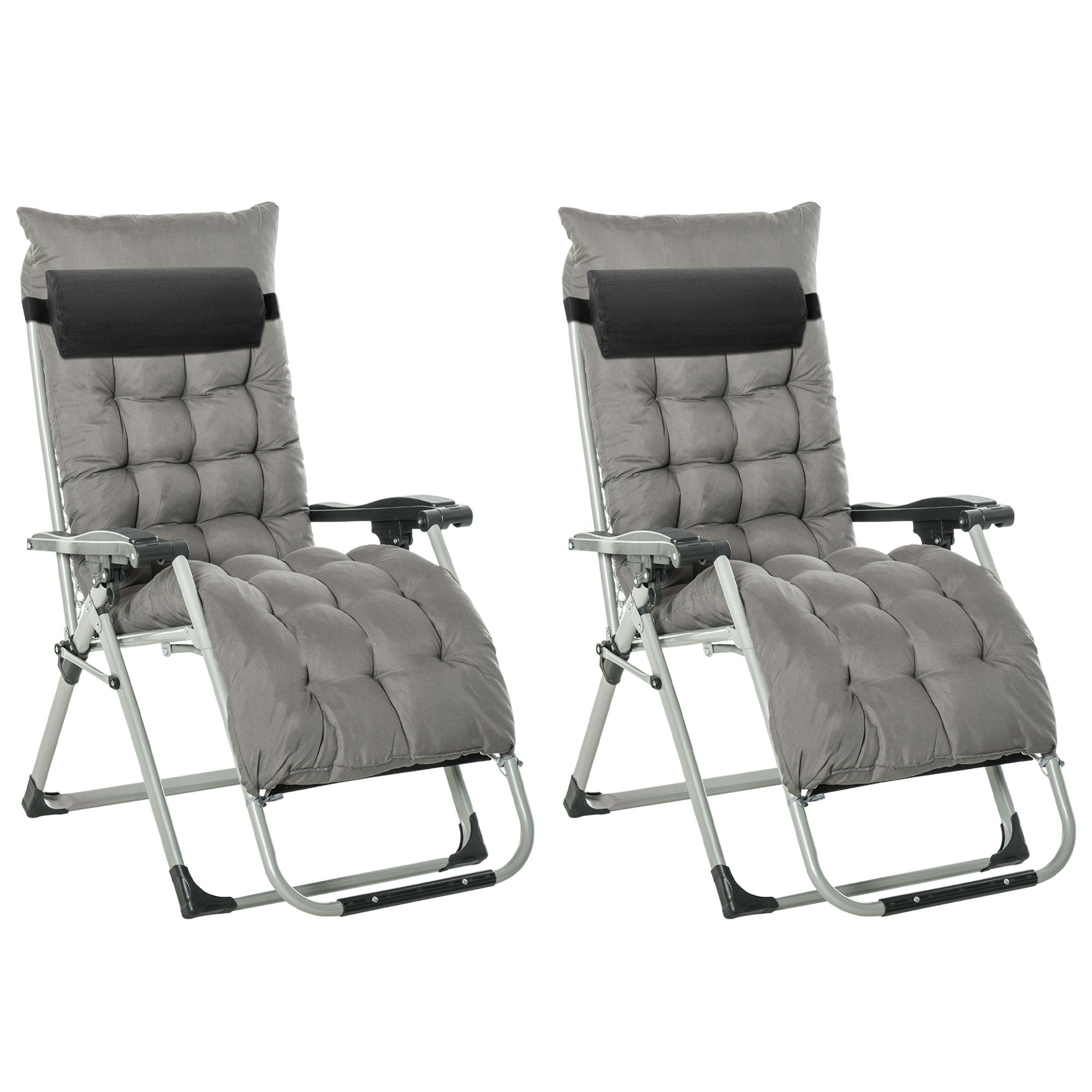 2 Piece Reclining Zero Gravity Chair Folding Garden Sun Lounger with Cushion Headrest Dark Grey