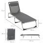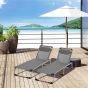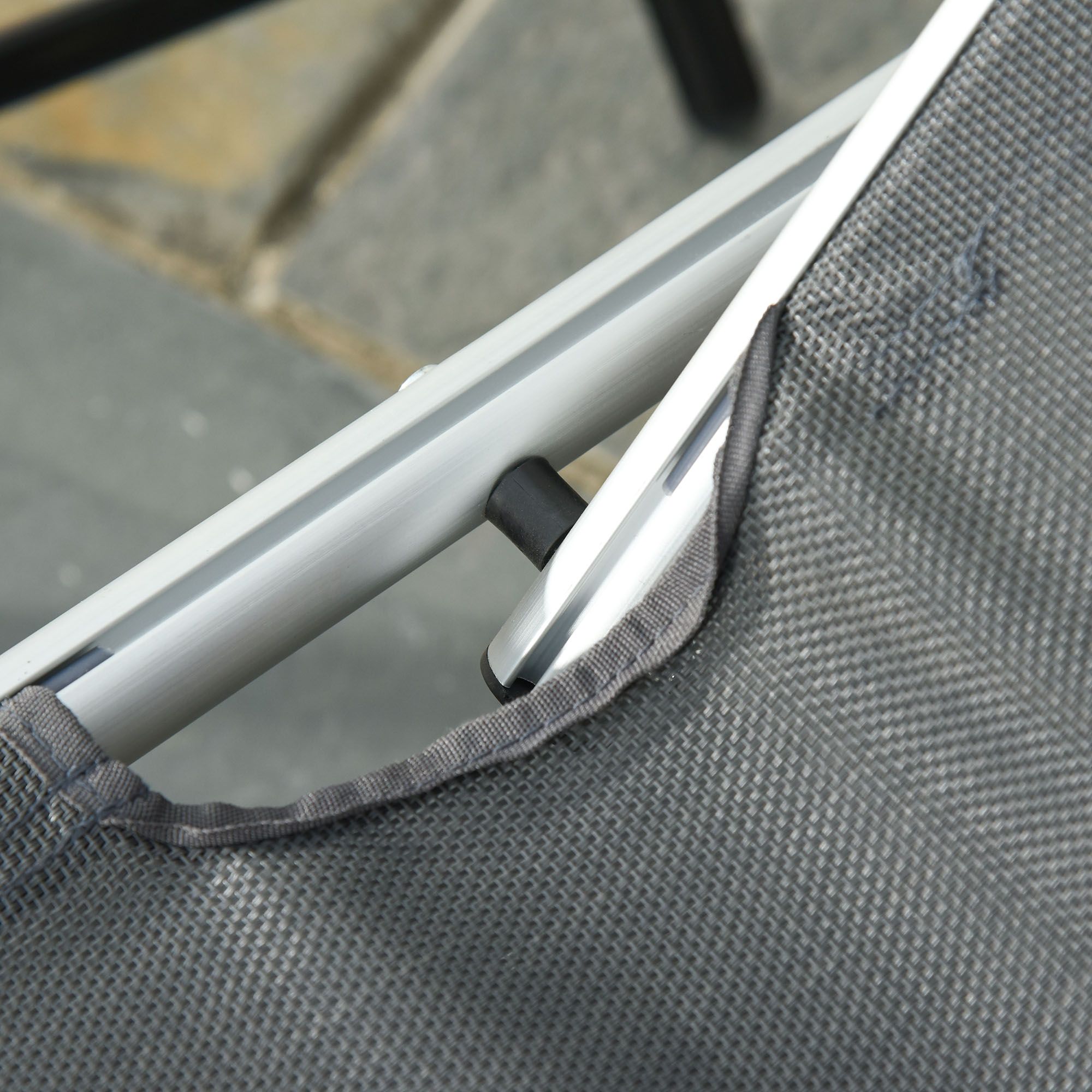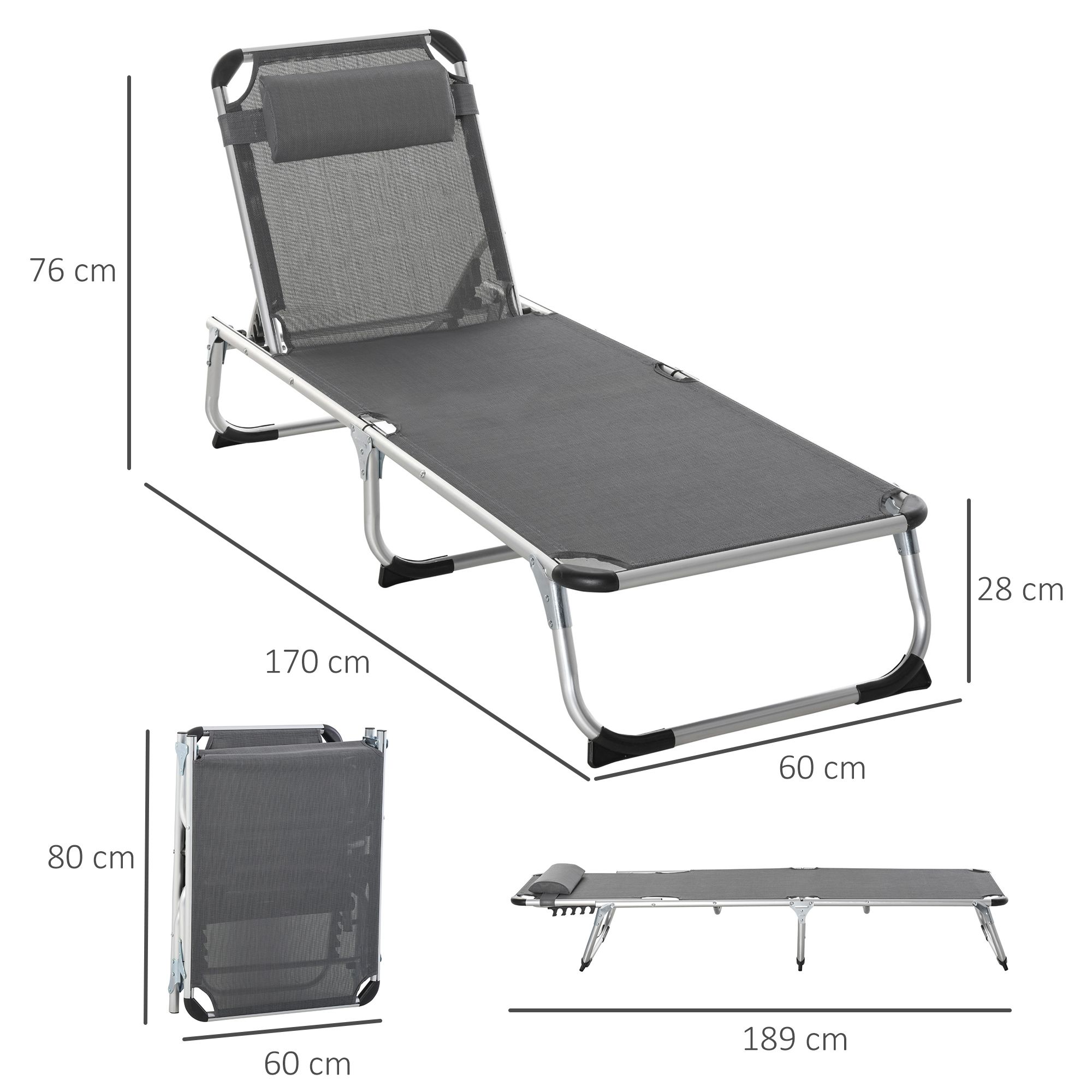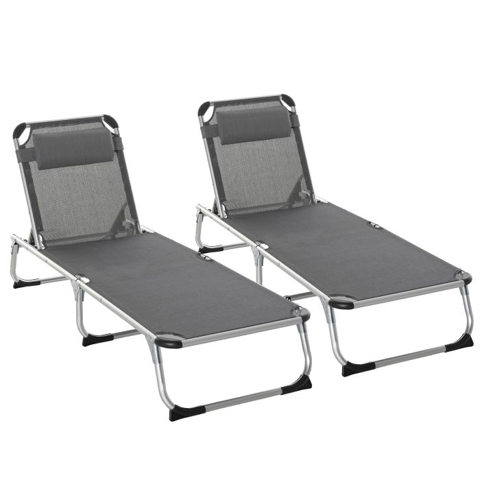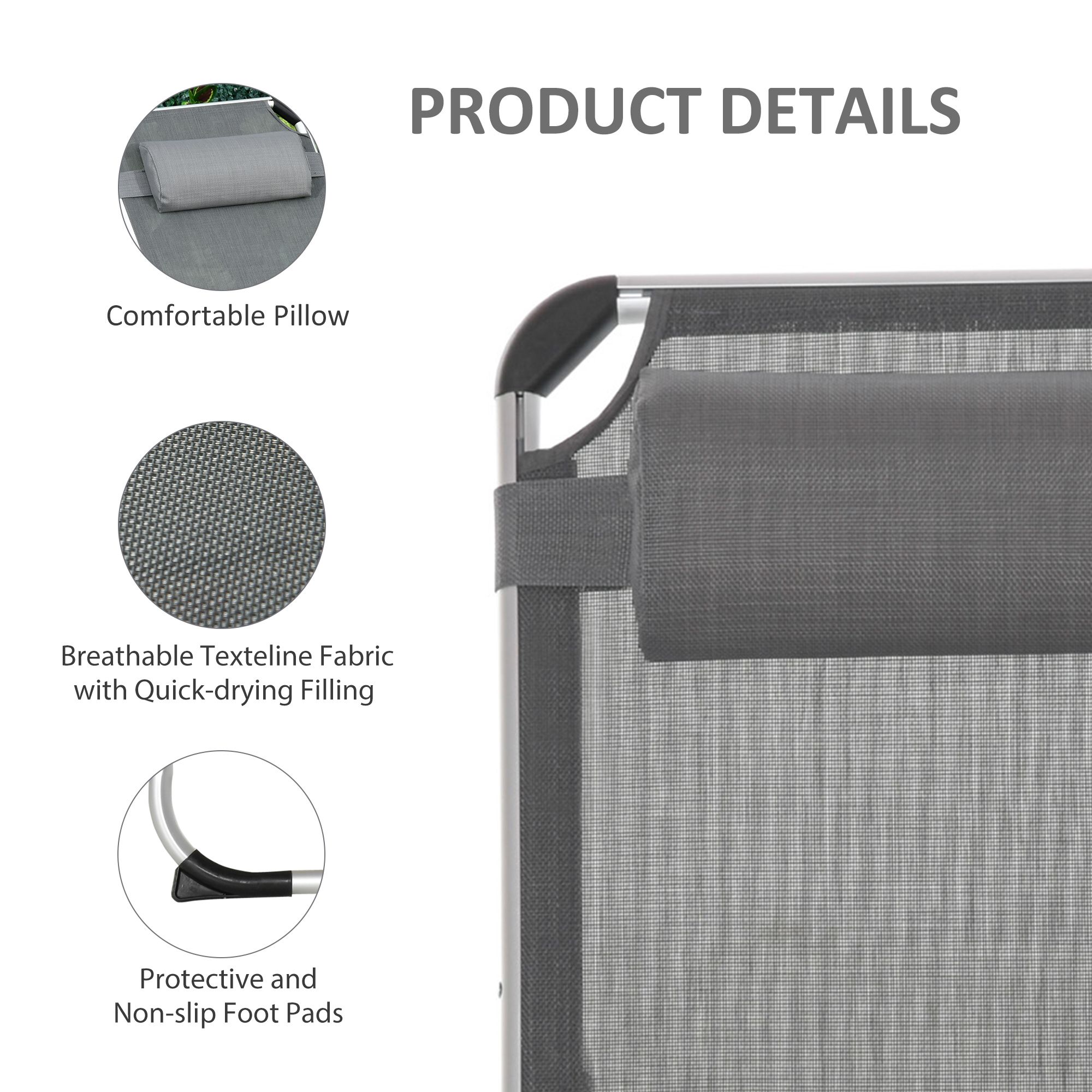 2 Pieces Foldable Sun Lounger with Pillow, 5-Level Adjustable Reclining Lounge Chair, Aluminium Frame Camping Bed Cot, Grey