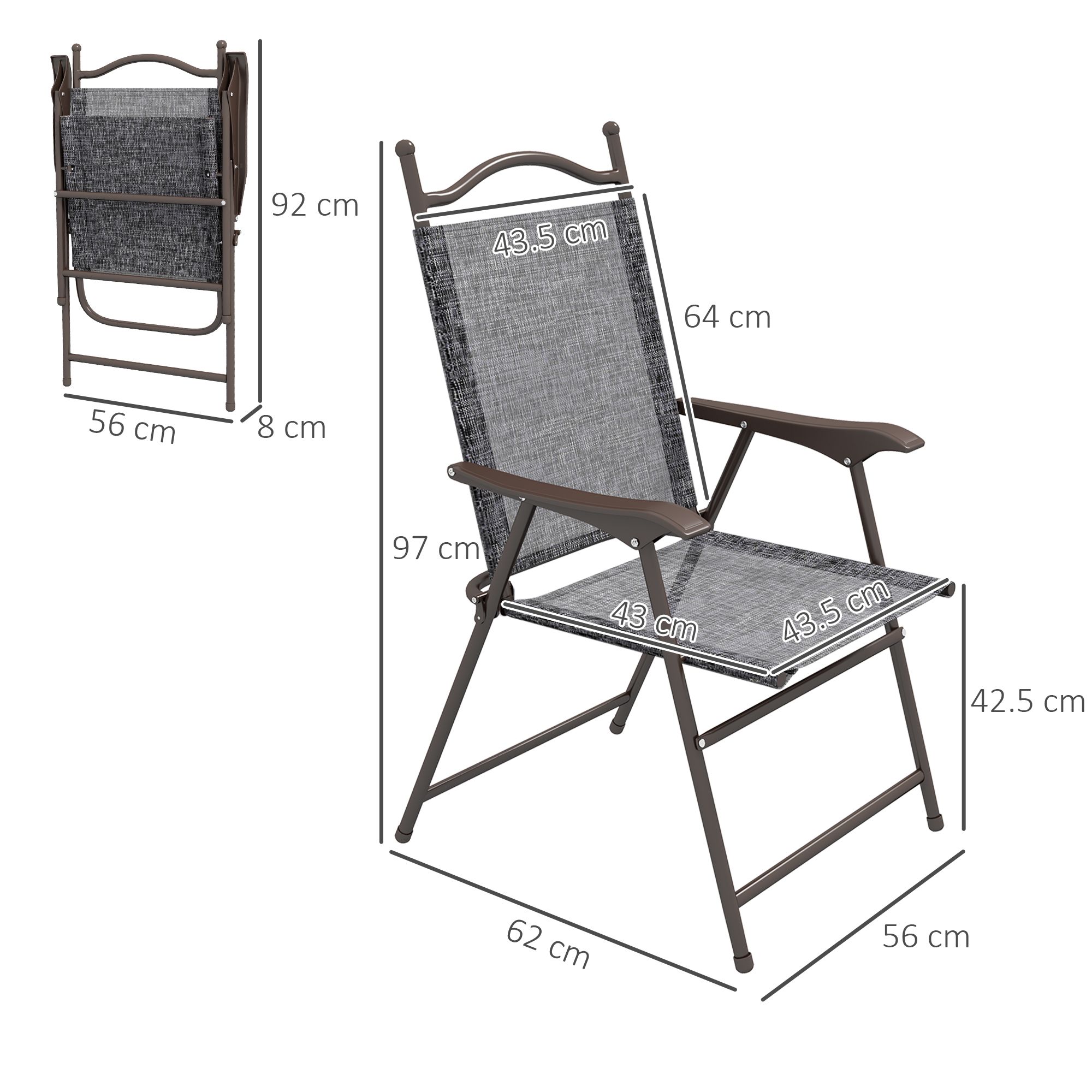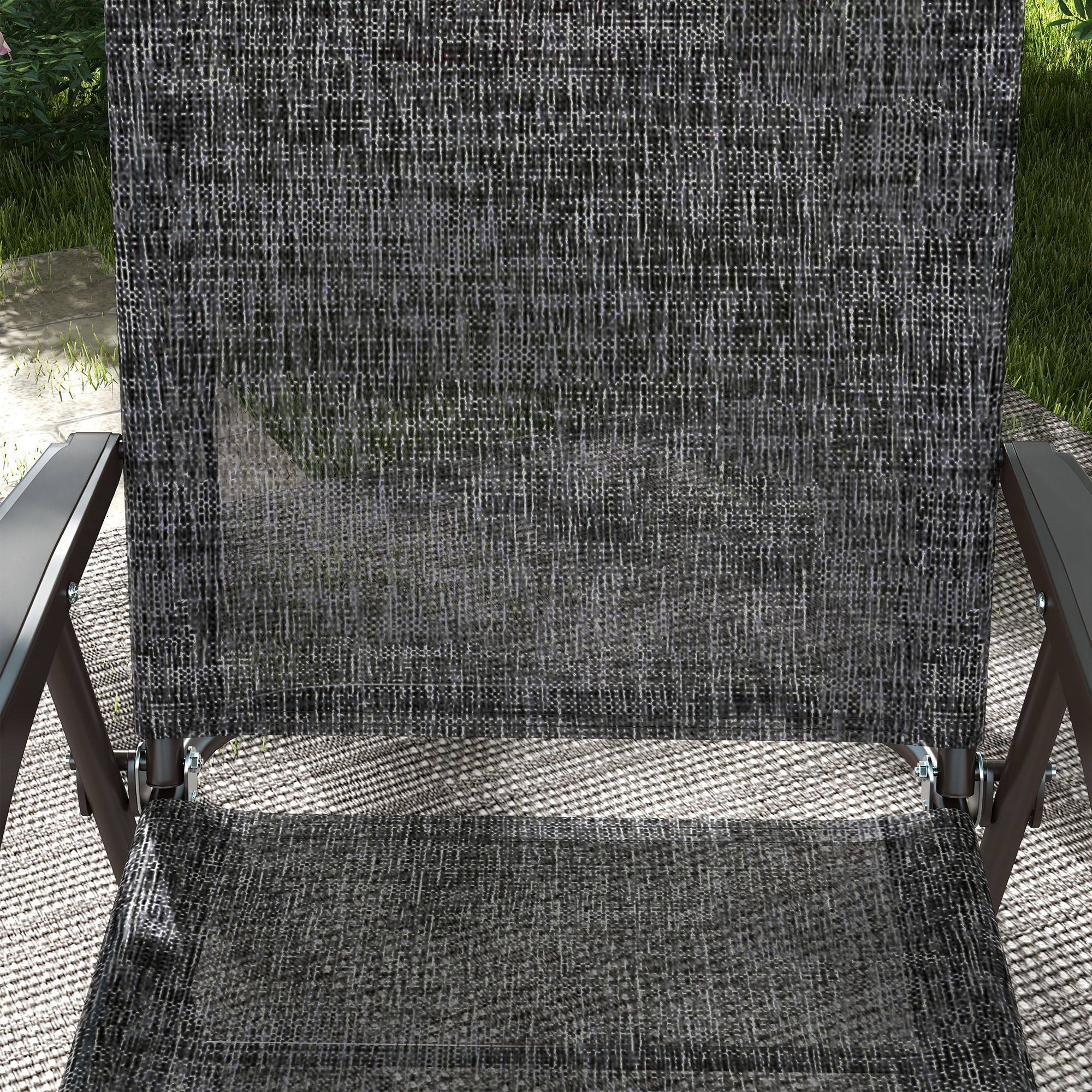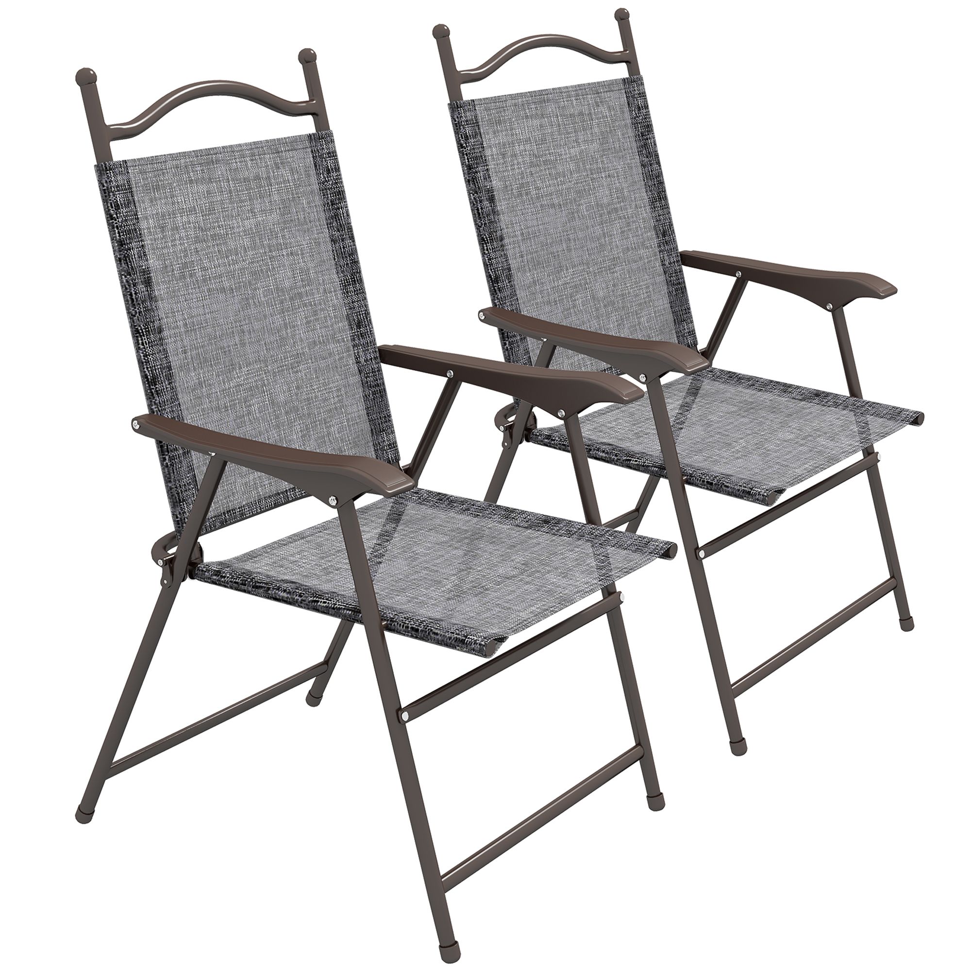 2 Pieces Folding Patio Camping Chairs Set, Sports Chairs for Adults with Armrest, Mesh Fabric Seat for Lawn