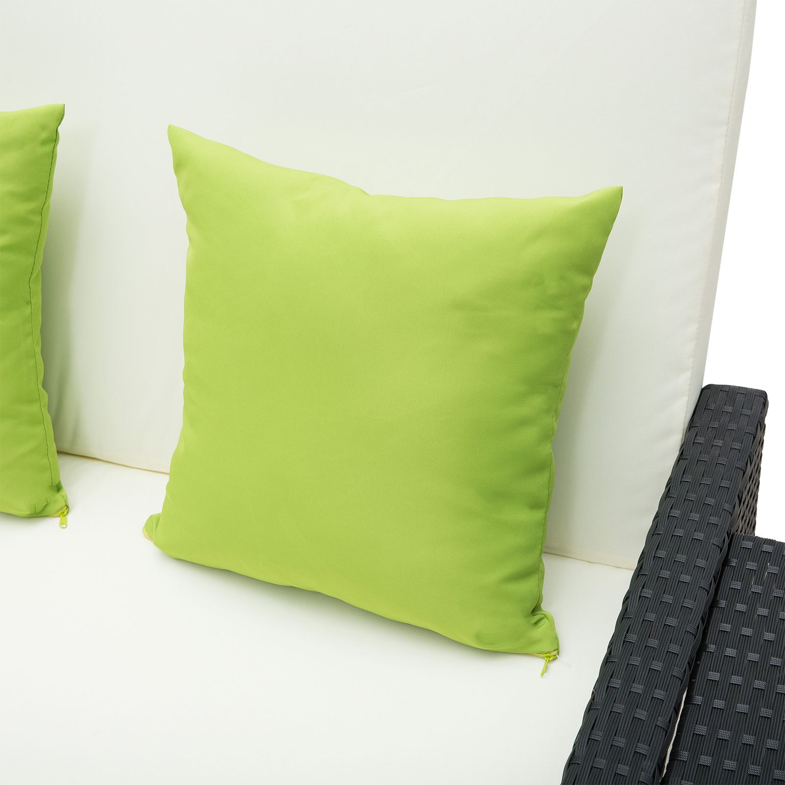 - Cushions complete with zipped covers which are made from high quality 180gm polyester fabric which can be removed and washed, but the cushions are not 100% weather proof and should not be left out in bad weather.
