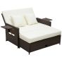 2 Seater Assembled Garden Patio Outdoor Rattan Furniture Sofa Sun Lounger Daybed with Fire Retardant Sponge - Brown