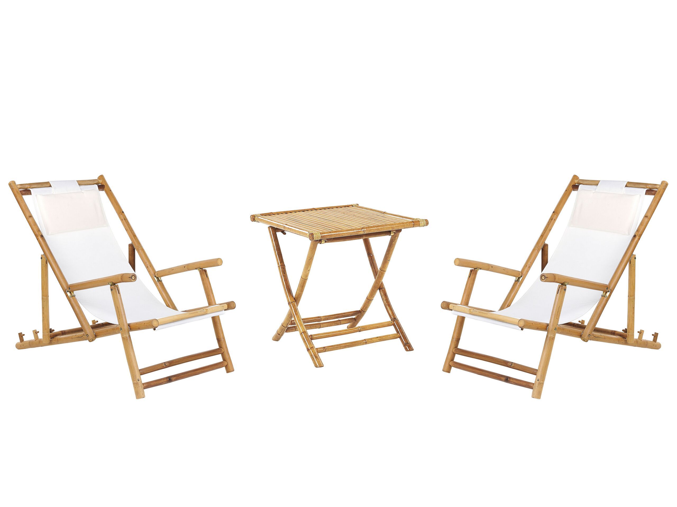 2 Seater Bamboo Sun Lounger Set with Coffee Table Light Wood and Off-White ATRANI /MOLISE