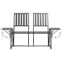 Enjoy a cosy leisure time with your friend in your outdoor space on this 2-seater metal garden bench! Convenient table: The bench seat is designed with the tables on both sides, allowing you to keep the snacks and drinks within reach.Comfortable seating experience: The backrest of this bench chair is shaped to provide good support and help you relax your tired body.Premium material: This bench seat is made of steel, weather-resistant and highly durable, making it suitable for daily outdoor use.Stylish look: The clean lines and elegant design will make this stylish bench seating stand out in any garden, patio or balcony. Note:In order to extend the life of your outdoor furniture, we recommend you to clean it regularly and do not leave it outdoors without protection unnecessarily.Clean: Use a mild soap solution.Storing: If possible, store in a cool, dry place indoors. If the product is stored outdoors, protect it with a waterproof cover. Wipe and dry the excess water or snow from flat surfaces after a rain or snowfall. Allow sufficient air circulation to avoid moisture-related damage.