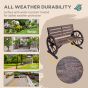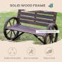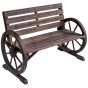 2 Seater Garden Bench Outdoor Garden Armrest Chair with Wooden Cart Wagon Wheel Rustic High Back Brown