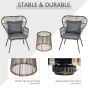 2 Seater Outdoor Patio Bistro Set, Wicker Rattan Furniture 2 Chairs 1 Coffee Table with Metal Legs for Garden, Backyard, Deck, Grey