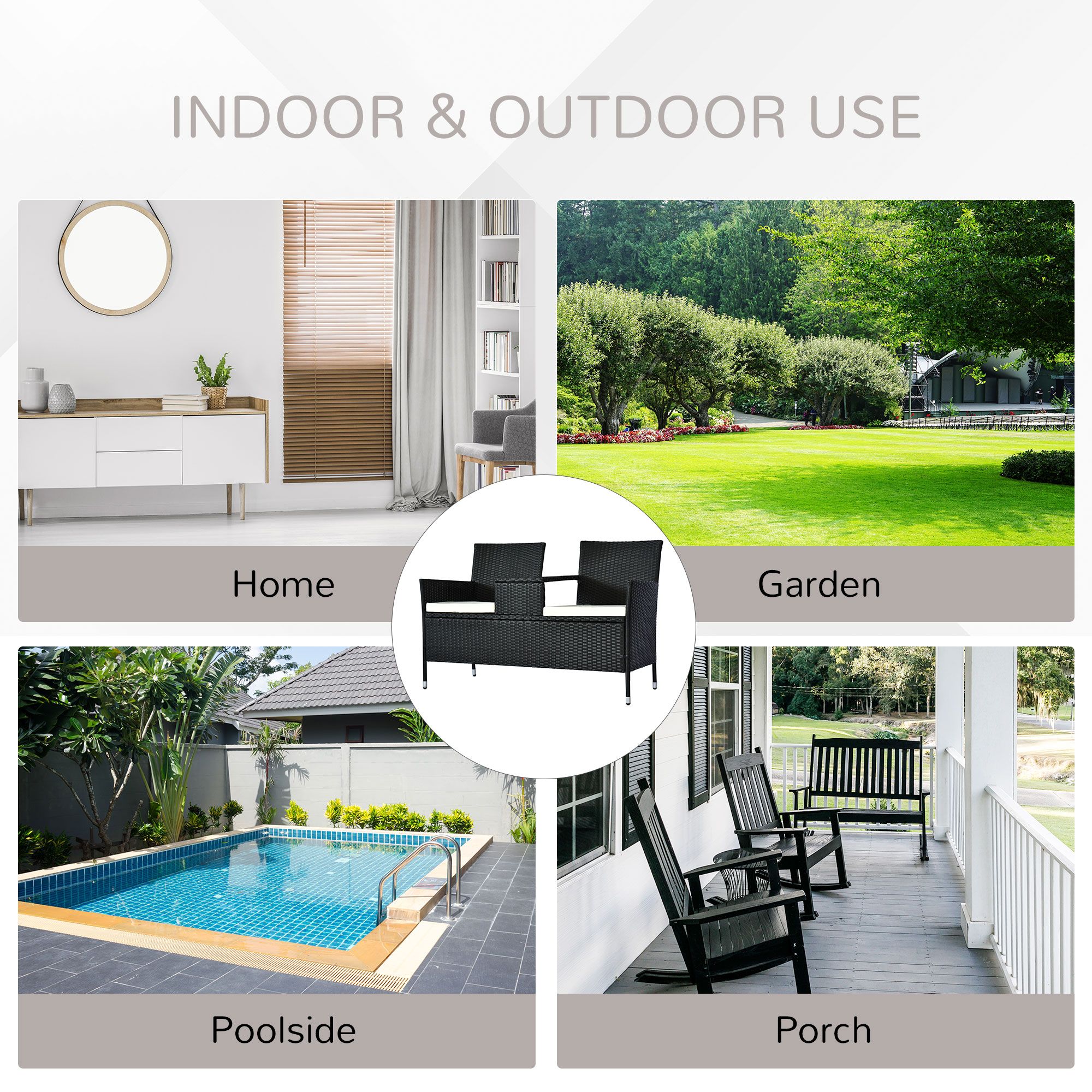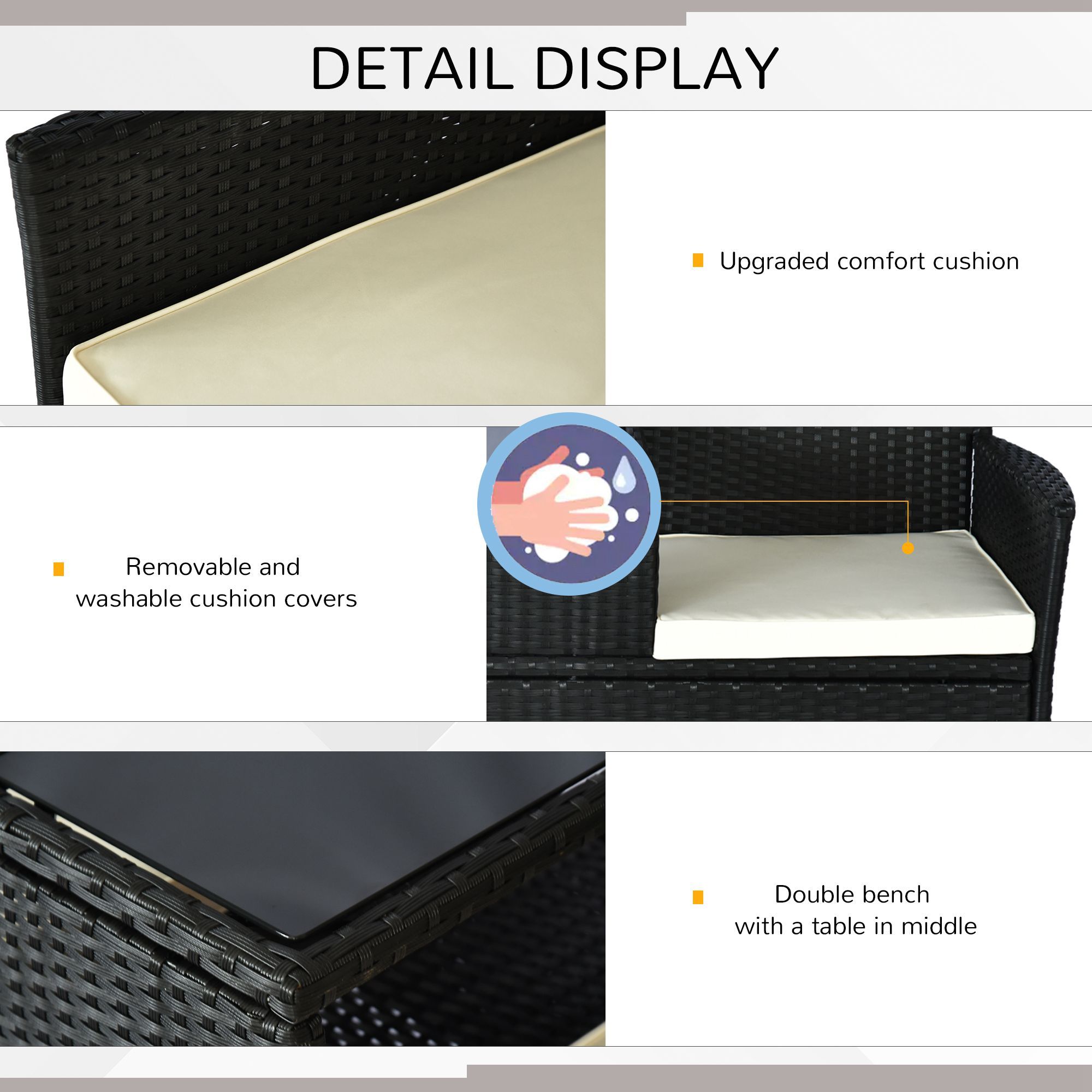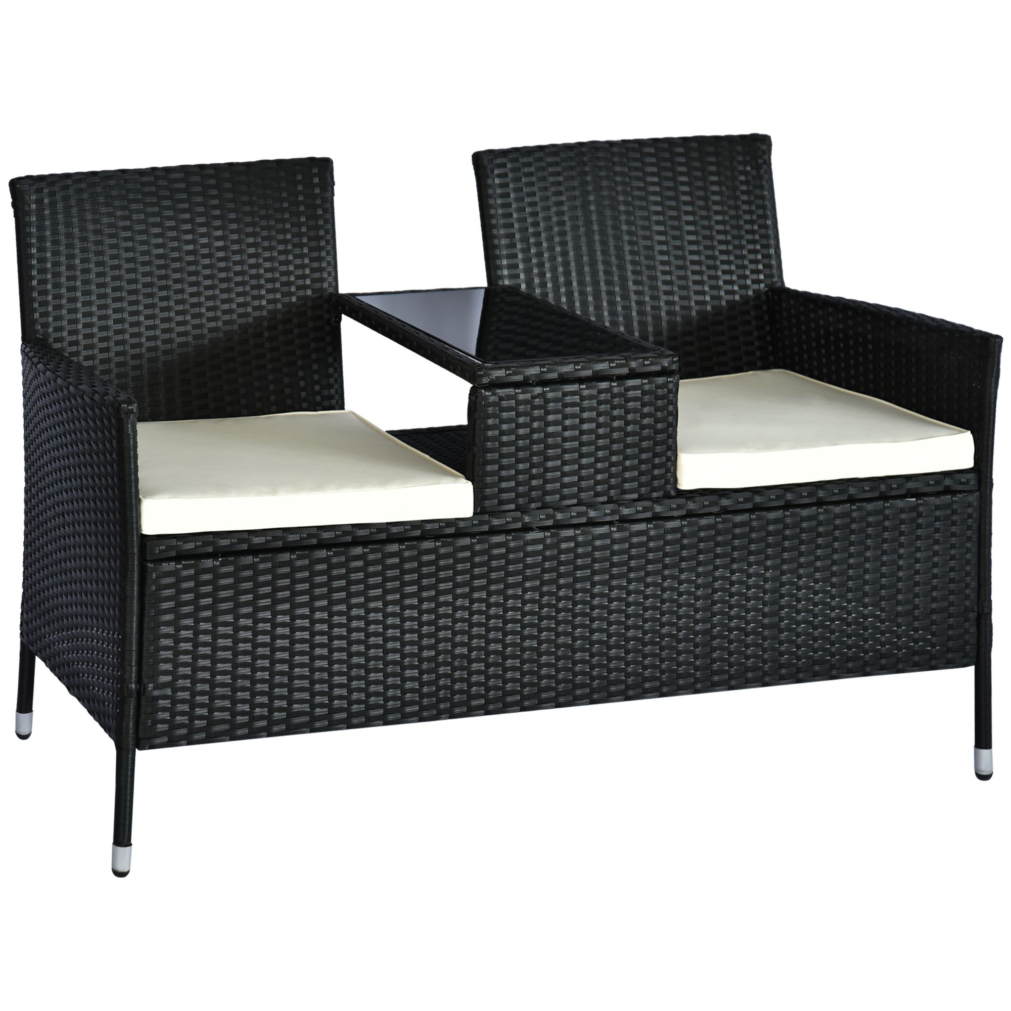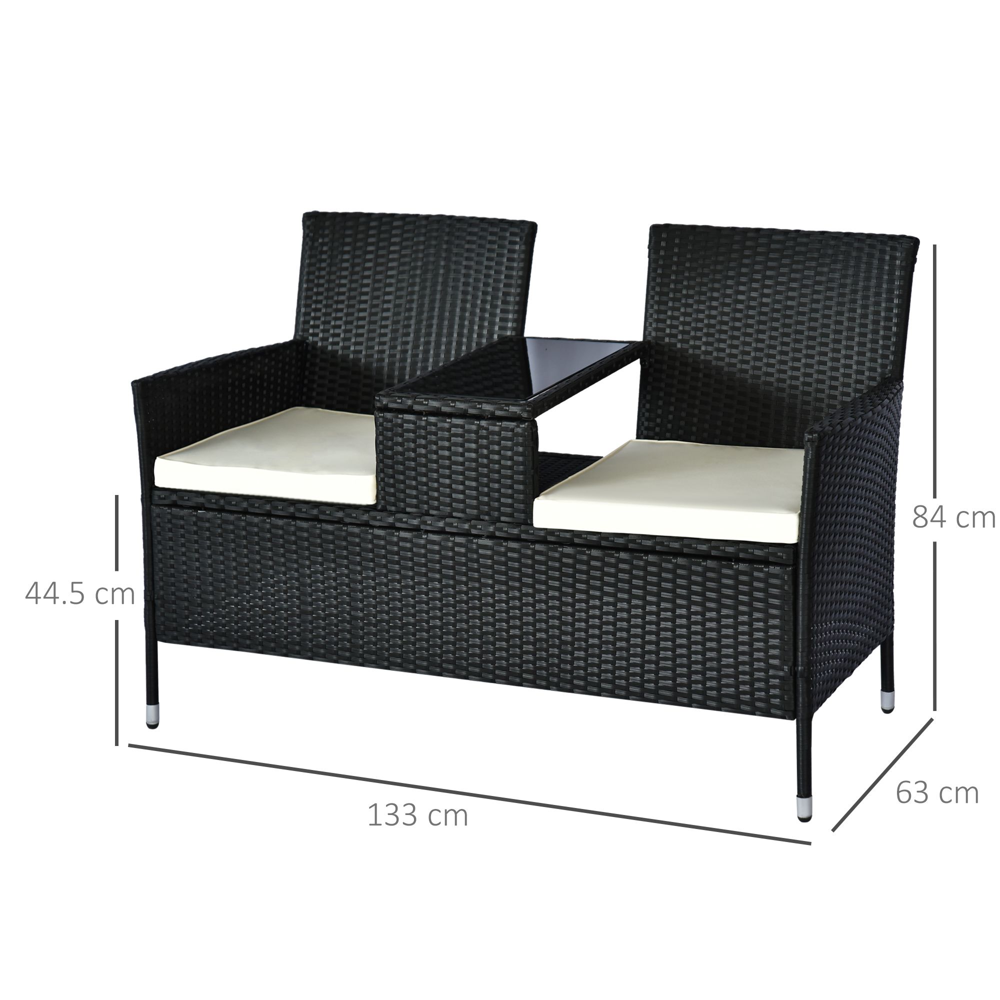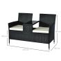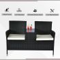 2 Seater Rattan Campanion Chair Wicker Loveseat Outdoor Patio Armchair with Drink Table Garden Furniture - Black