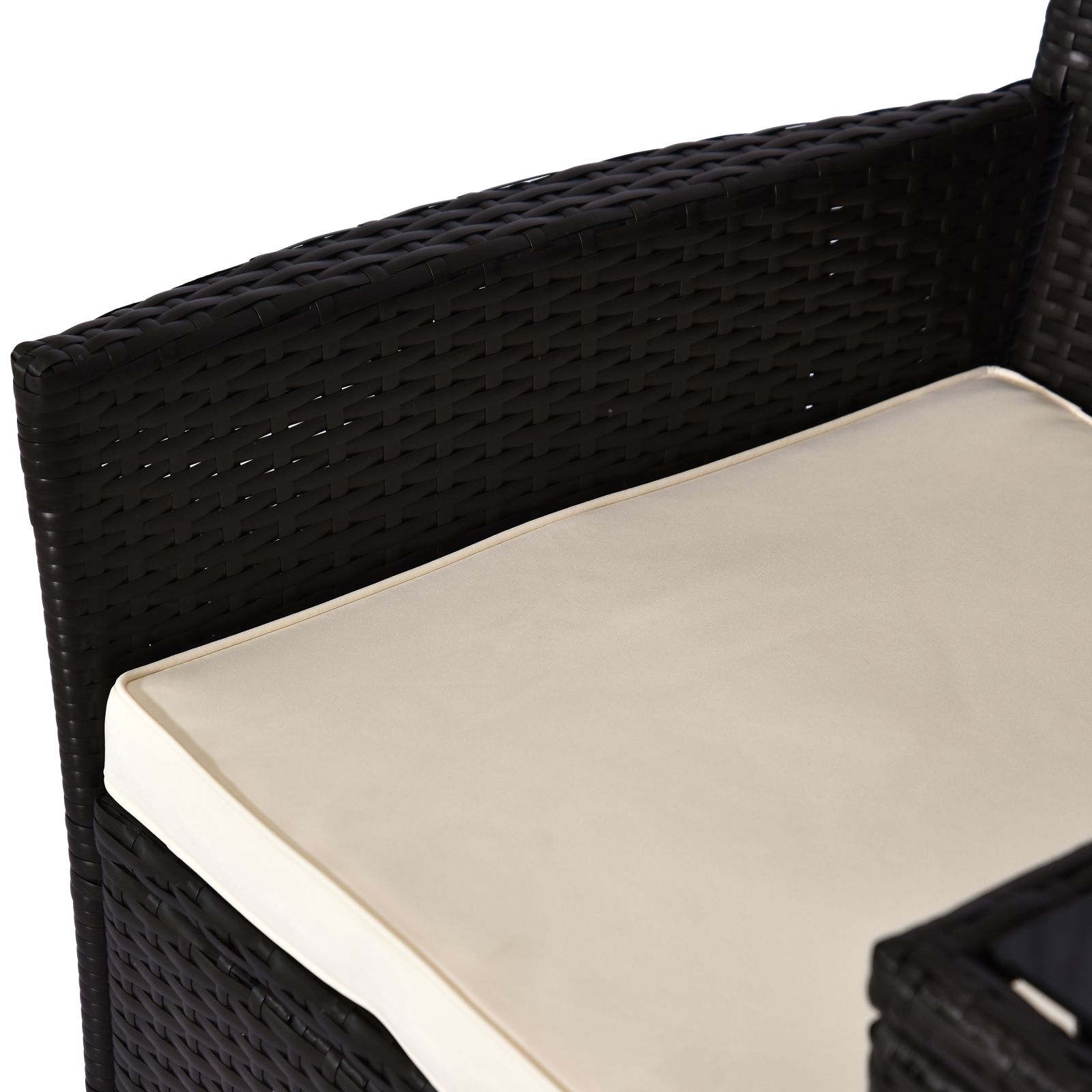 This stylish and modern double rattan chair set from is suitable for yard, patio, deck, garden or home use. Solid metal pipe and durable PE wicker in excellent craftsmanship. Each seat has 1 cushion filled with 180g/㎡ cotton to provide higher degree of comfort. 18 kg gross weight allows it to be relocated as and when desired.
