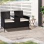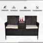 2 Seater Rattan Chair Set Wicker Loveseat Campanion Chair Patio Armchair with Coffee Table and Cushions, Dark Brown