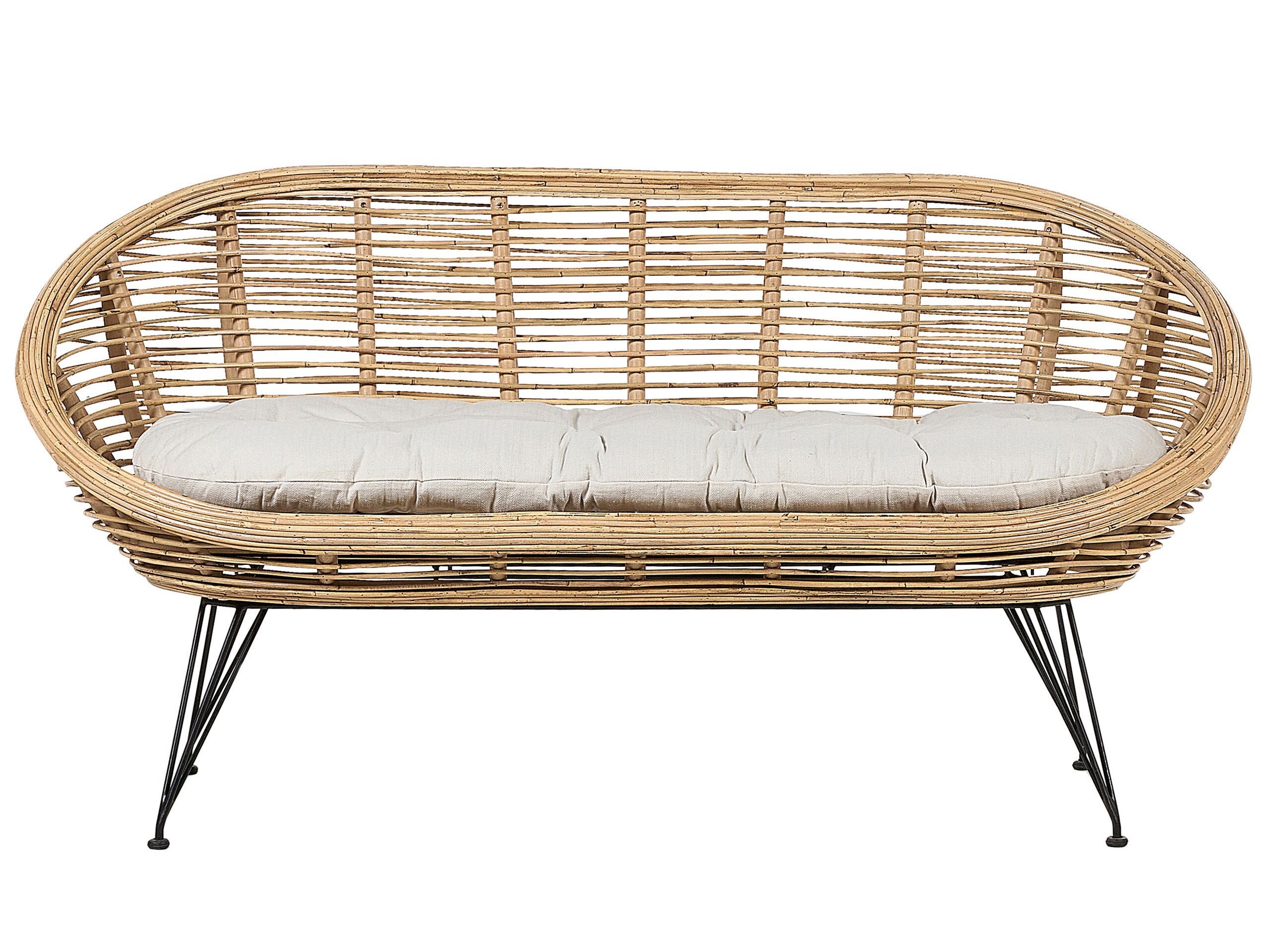 Refresh your home or surroundings with this versatile boho-inspired rattan sofa, seamlessly crafted to grace both indoor and outdoor spaces. Its black iron legs ensure a steadfast and stable structure, promising longevity. Immerse yourself in the embrace of a cotton seat cushion that perfectly complements the piece's look and makes the entire sofa extremely comfortable. The boho-style design lends a natural accent, effortlessly enhancing any home decor. Details: Color: Natural, Black, Beige. Main material: Rattan. Additional material: Iron, Cotton, Polyester, Viscose. Material Composition: 40% Polyester, 38% Cotton, 22% Viscose Weight: 24 Capacity: 2 People Assembly: Partial Assembly Required Wood type: Calamus rotang Wood Origin: Indonesia Weight Capacity: 100 Cushions Dimensions: 138x60x10 Legs Height: 34 Padding Thickness: 5 Seat Height: 48