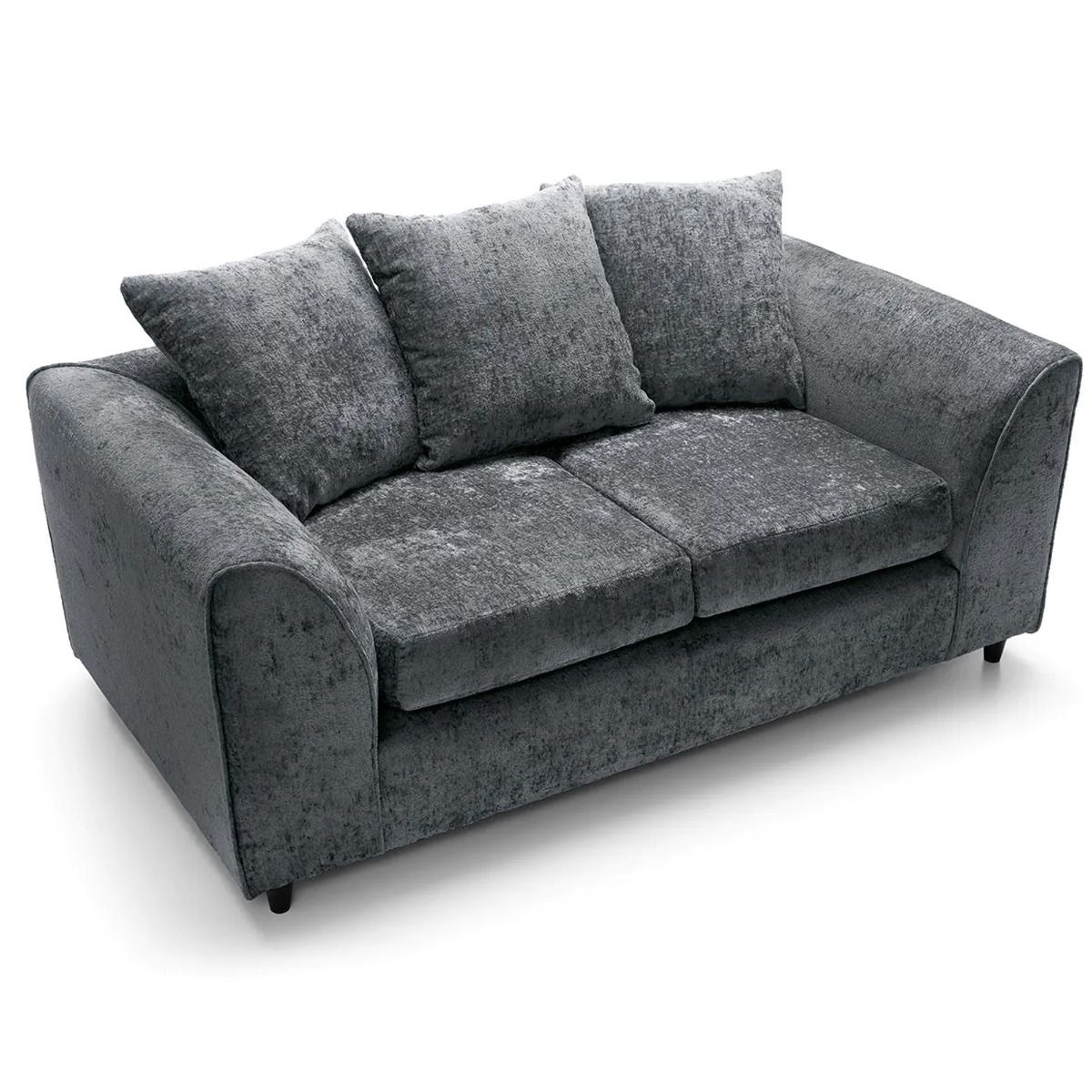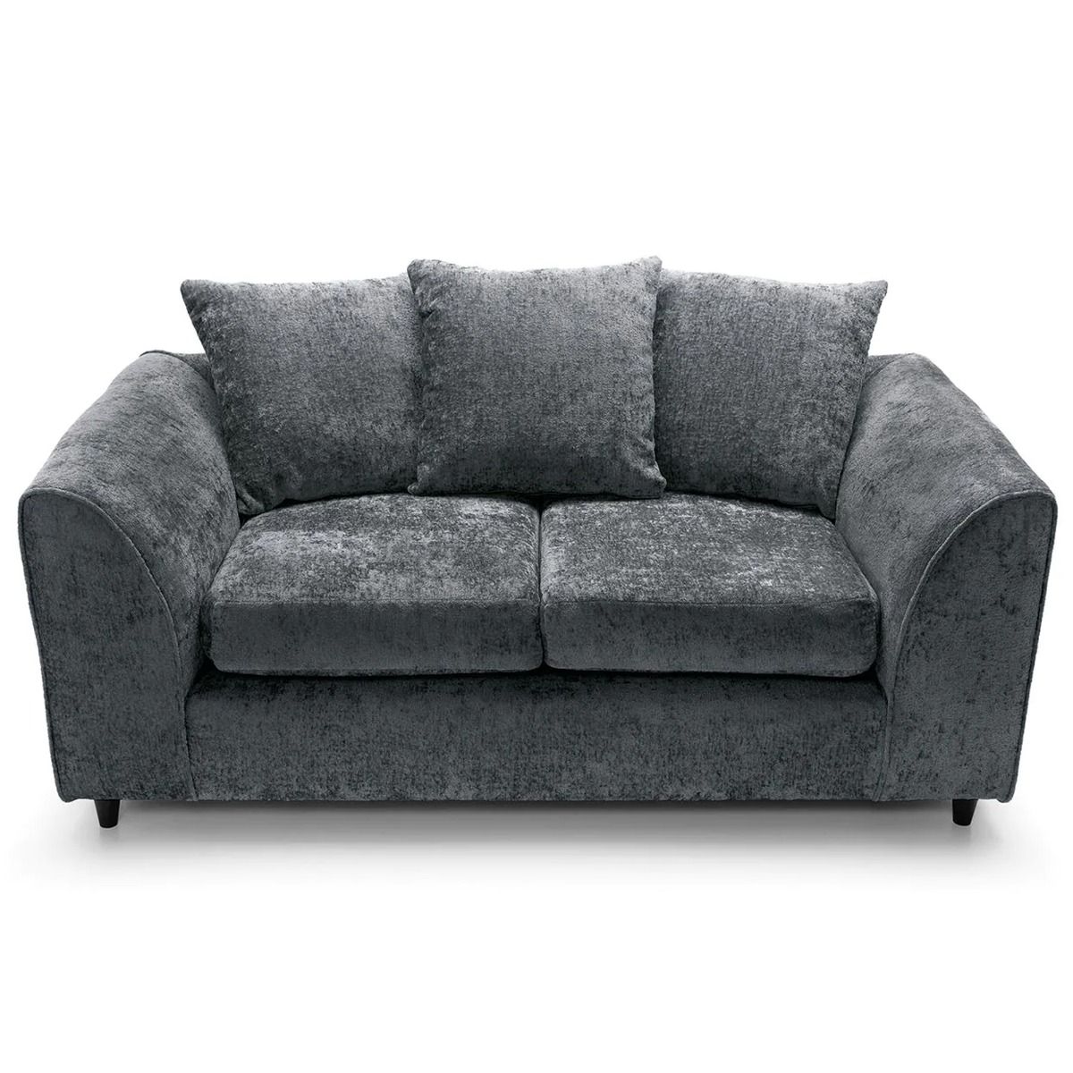 2 Seater Sofa - HENRY Crushed Chenille Fabric Sofa - Dark Grey