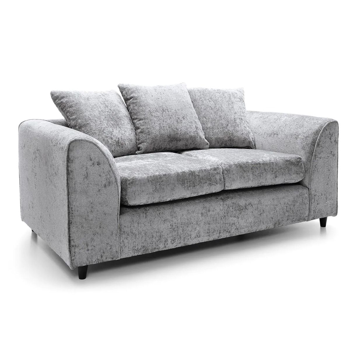2 Seater Sofa - HENRY Crushed Chenille Fabric Sofa - Light Grey