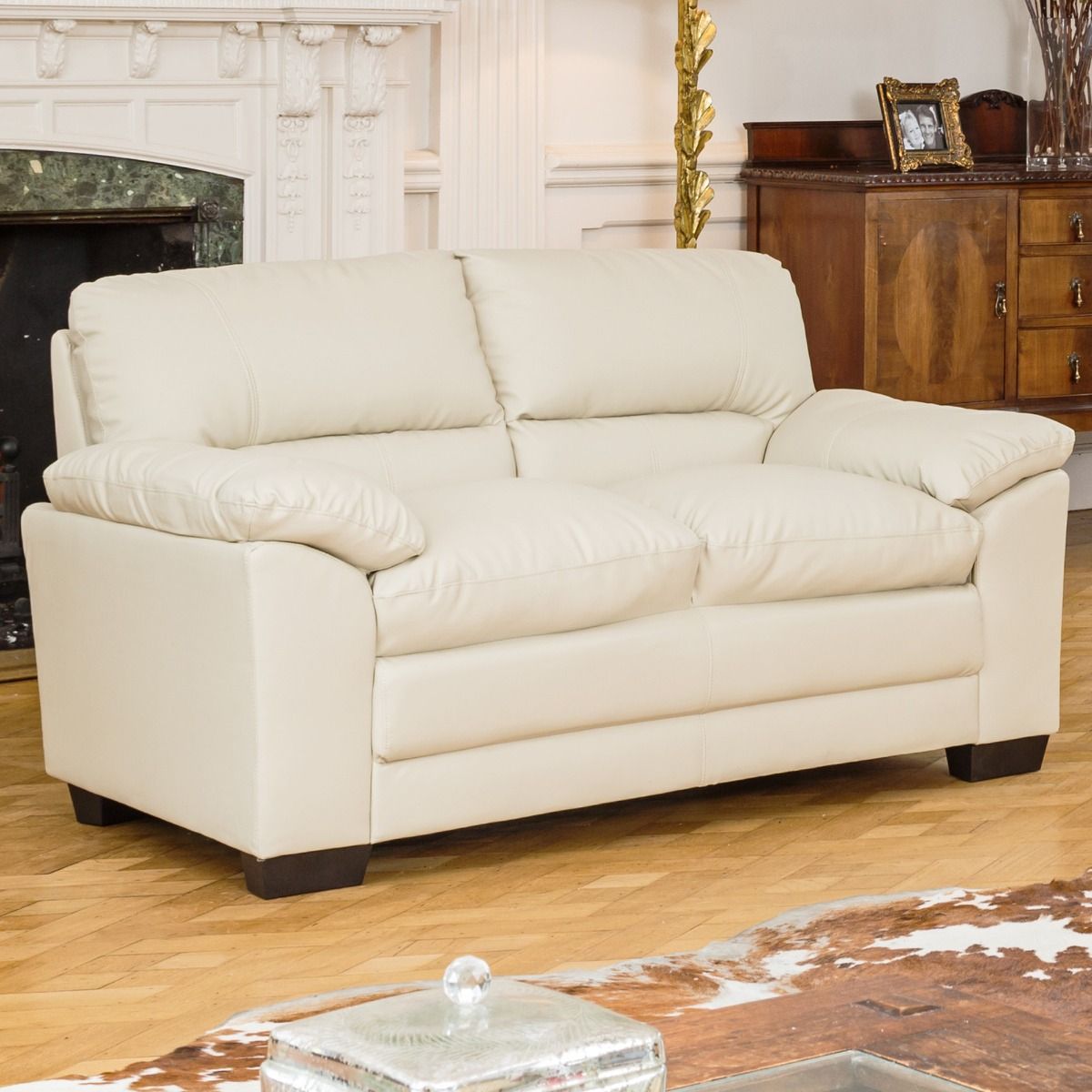 2 Seater Sofa - LEVRANO Leather Sofa - Cream