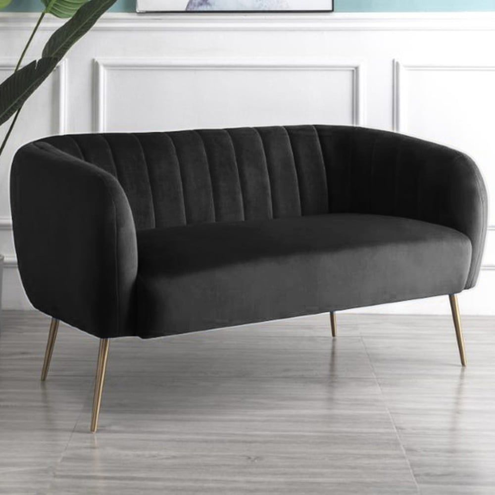 2 Seater Sofa - LUMETTA Velvet Fabric Sofa - Black