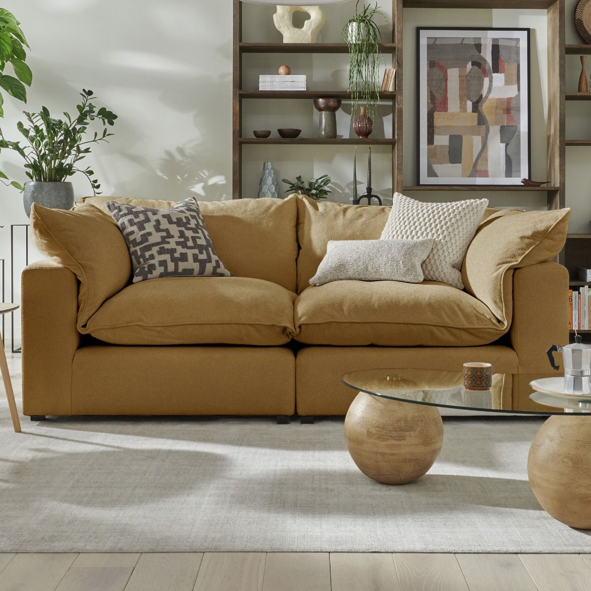 A refined balance of luxurious comfort and sleek versatility, the PUEBLA 2 Seater Sofa in Amber is designed to enhance any living space. Thoughtfully crafted with deep cushioning and soft-touch upholstery, it offers a plush seating experience, making it ideal for both compact and spacious interiors. Its streamlined silhouette brings a modern touch while maintaining timeless appeal, ensuring effortless integration into a variety of décor styles. As part of the PUEBLA Range, which includes Armchair, Chaise, Medium and Large Corner Sofas, Footstool, and configurable U Shape options with open-end or closed-end variations, this sofa seamlessly merges classic elegance with practical functionality. Whether styled as a standalone statement piece or paired with other seating options, it delivers effortless sophistication. Available in a refined palette Cotton, Eggshell, Fossil, Saffron, Amber, Verde, and Slate it adds warmth and refinement to any space.
