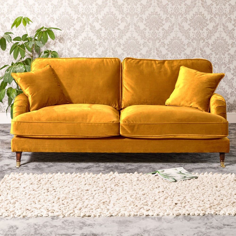 2 Seater Sofa - SOLVARE Velvet Fabric Sofa - Yellow