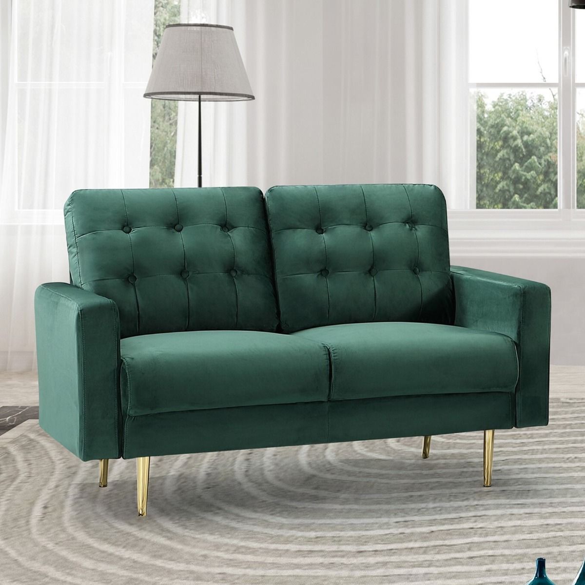 2 Seater Sofa - VAREZZO Fabric Sofa with Metal Legs - Green