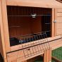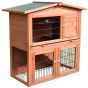 Create a comfortable and safe place for your small animal(s) with this rabbit cage from. It's formed into two levels, giving your pet plenty of room to move around, with the three doors providing easy access inside to clean and tidy up. Made from solid fir wood, the structure is made to last and keep your pets safe, with a top paint coat for extra protection. The inner connecting-level ramp allows animals to move up and down safely; the top level is fitted with a removable divider so you can create two upper rooms if needed. The slanted roof helps prevent water build up, with a layer of covering for extra protection. It's finished with wire mesh on the bottom to keep them safely enclosed whilst outdoors. Suitable for rabbits, guinea pigs, gerbils and other similar small animals.