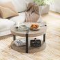 2-Tier Round Coffee Table with Storage Shelf-Oak
