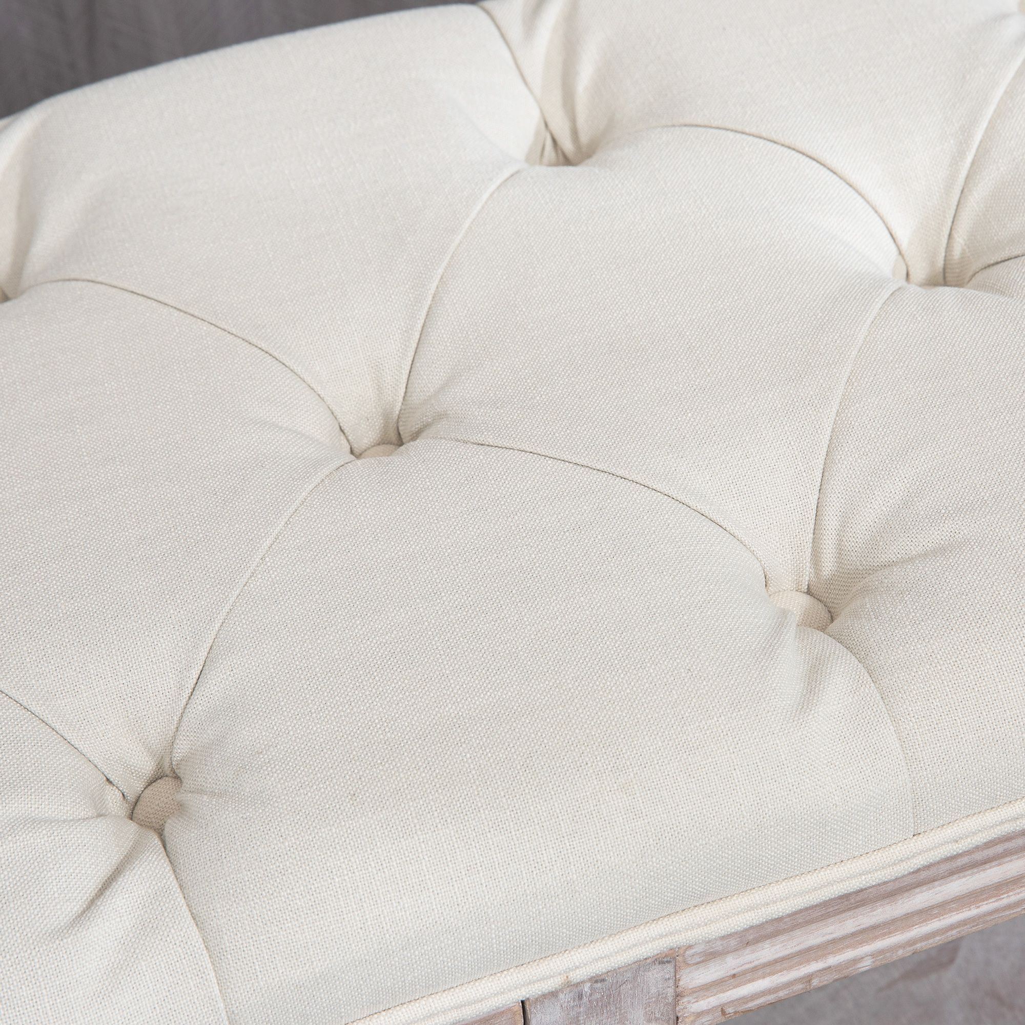 - Carved legs and tufted top for an elegant look. Touch of vintage style