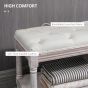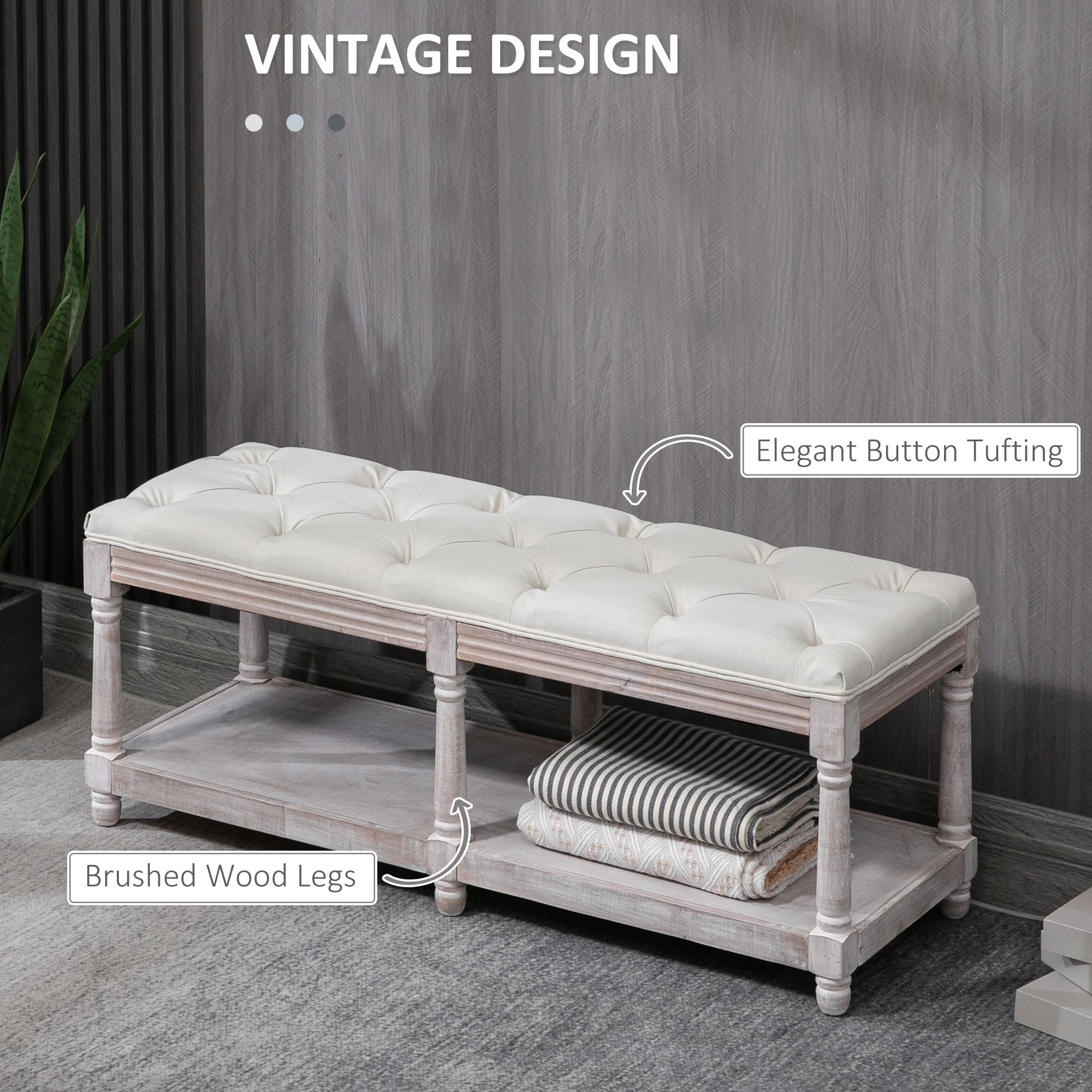 2 Tier Shoe Rack Bench with Button Tufted Upholstered Cushion, Vintage Bed End Bench, Wooden Window Seat for Hallway, Living Room, Cream White