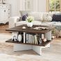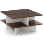 2-Tier Square Coffee Table with 4 Storage Compartments and Cross-shape Base-Coffee