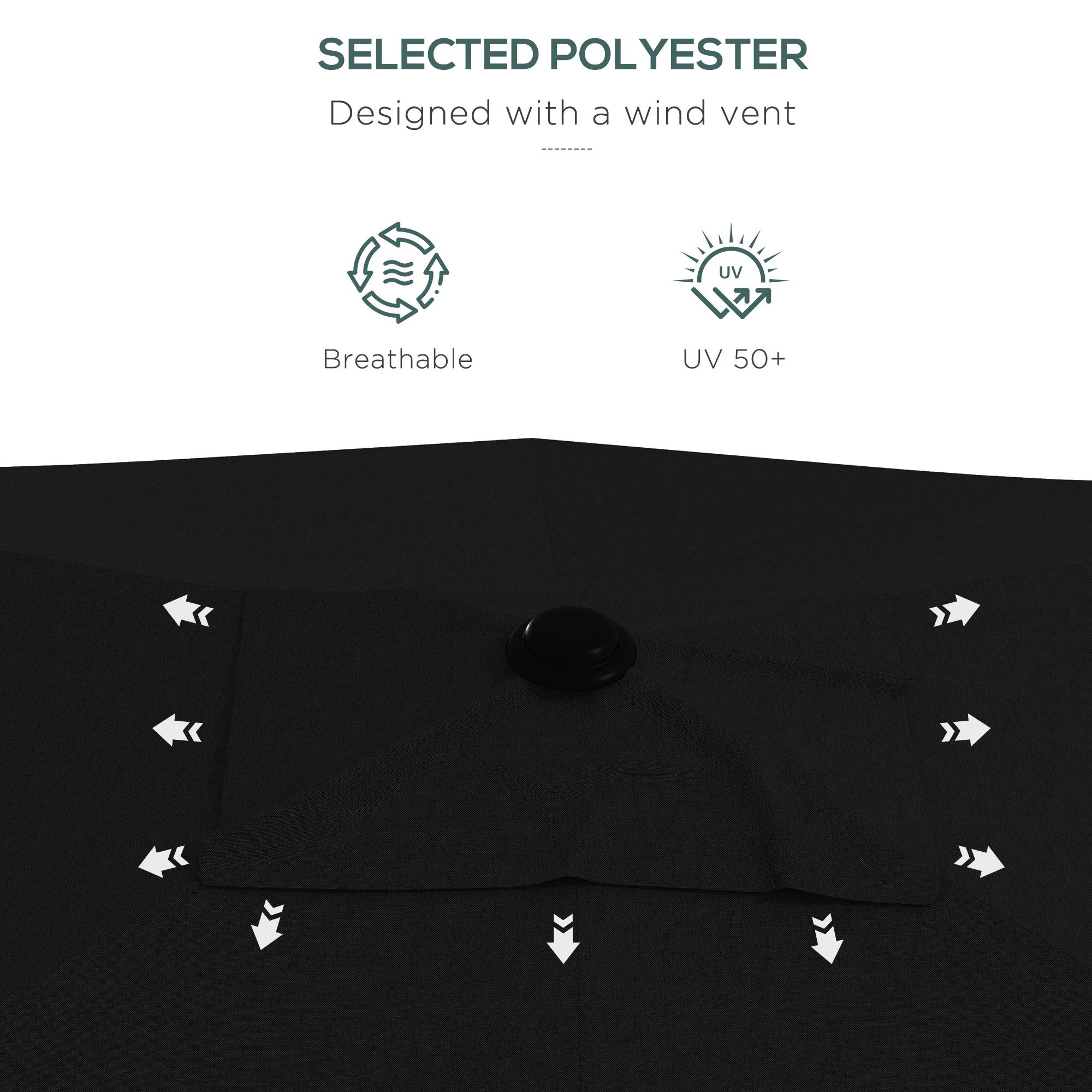 2 x 3(m) Garden Parasol Umbrella, Rectangular Outdoor Market Umbrella Sun Shade with Crank & Push Button Tilt, 6 Ribs, Aluminium Pole, Black