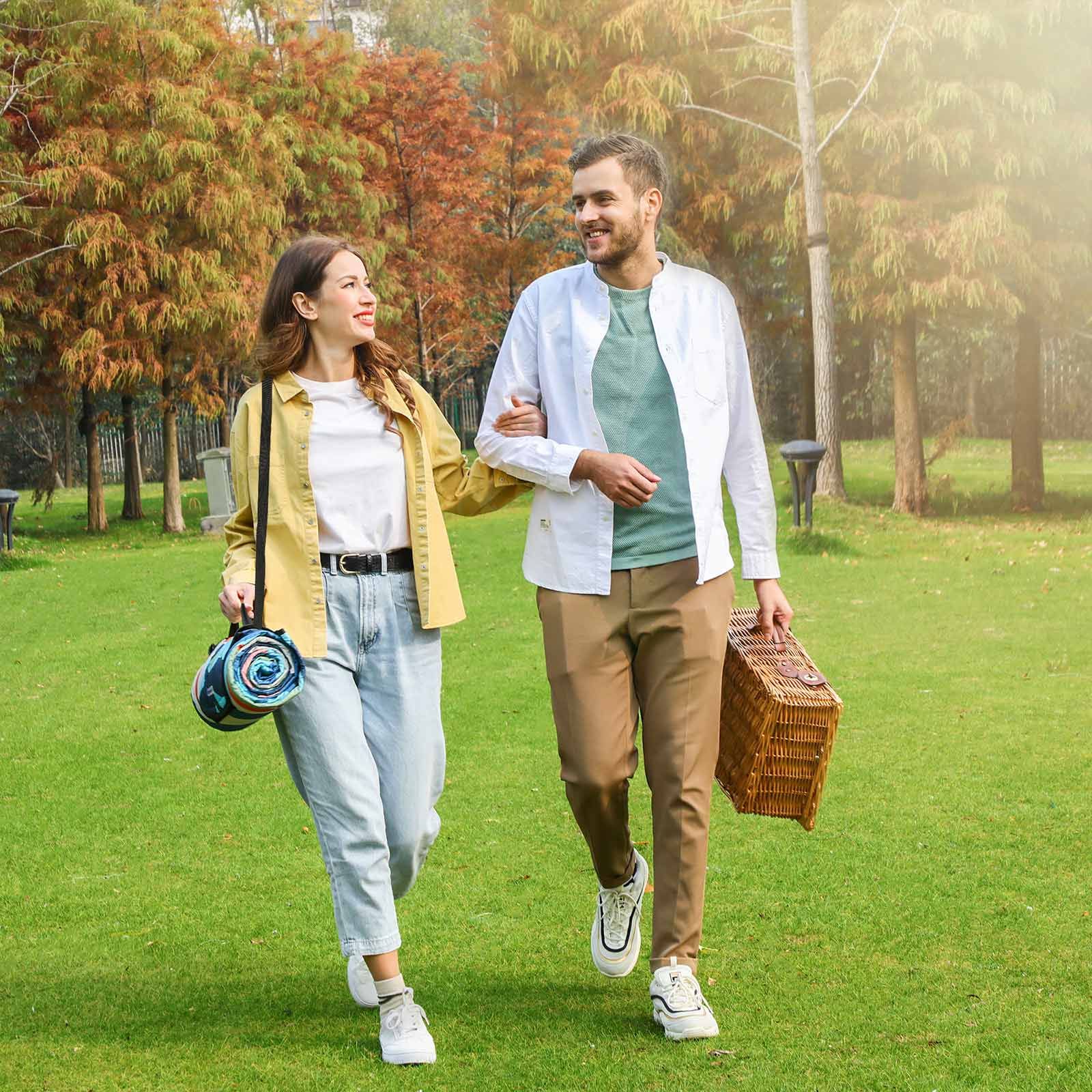 Enjoy the Great Outdoors Be it for a spring picnic, a summer camping, a musical festival, or nice sunbathing, this picnic blanket is your go-to accessory while you're at the park, yard, beach, or countryside retreat. Built with Quality With a soft pongee fabric top, a waterproof aluminium bottom, and a sponge padding in between, this blanket is comfortable and waterproof. Simply fold it flat into a small size and carry it around on trips.