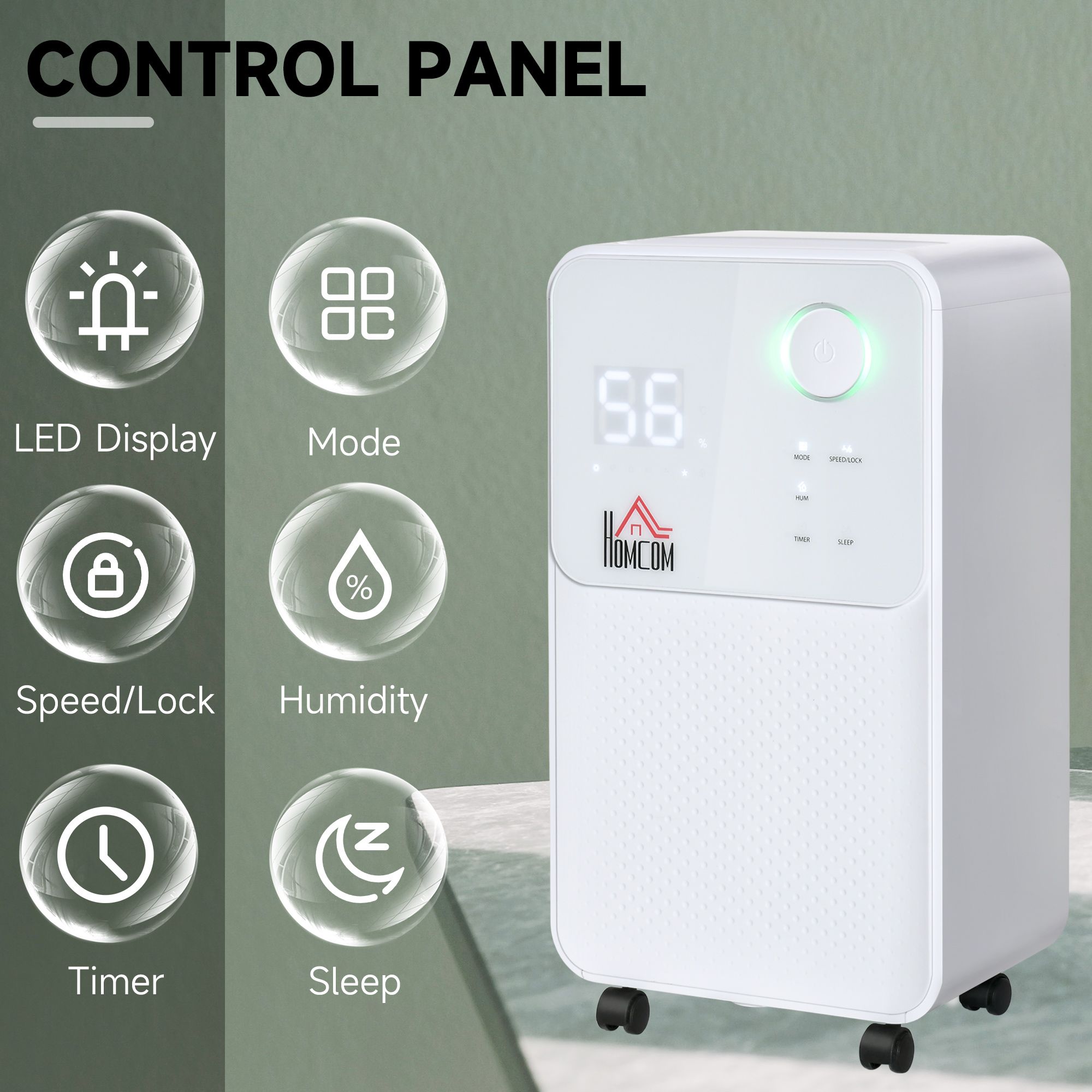 - Powerful moisture removal (up to 12 litres a day, suitable for 8-12m² sized rooms