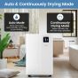 This 20L dehumidifier is crafted to effectively manage humidity in large spaces up to 25㎡, making it an ideal choice for both homes and basements. It provides 3 operating modes for customized comfort, including continuous drying/auto/sleep mode. With a clear front LED display and 3-color humidity indicator light, you can easily check the current humidity level at a glance. The 24-hour timer allows you to schedule operation times, while its quiet operation ensures a peaceful environment. Besides, the dehumidifier offers 2 ways to drain: manual drainage (empty the water tank) or continuous drainage (connect the included drain hose). When the water tank is full, it will activate an alarm and shut off automatically.