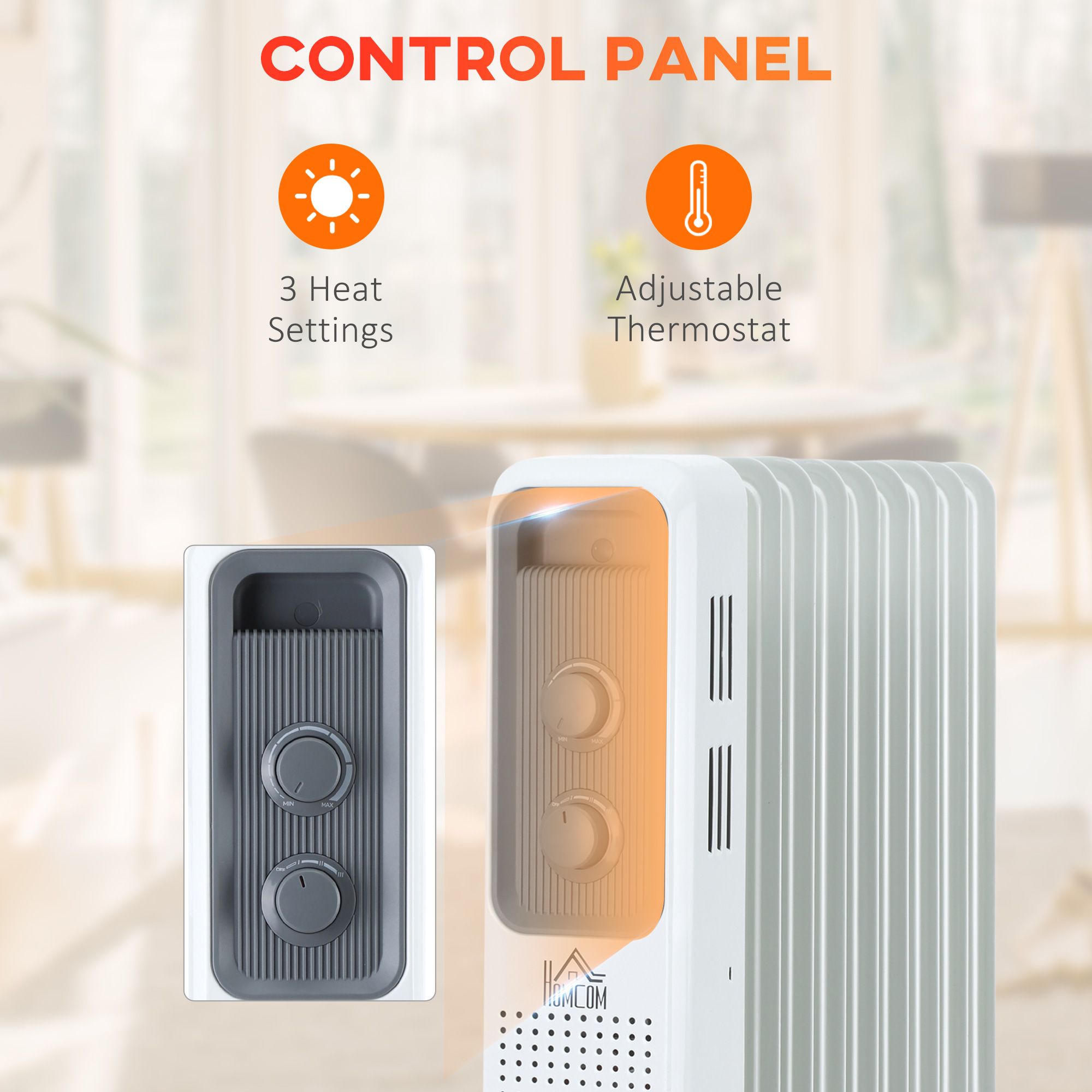 2180W Oil Filled Radiator, Portable Electric Heater w/ Built-in 24-Hour Timer, 3 Heat Settings, Adjustable Thermostat, Safe Power-Off, 9 Fins