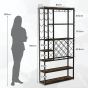 The standing wine storage shelf is an ideal wine storage solution. It is designed with 3 rows of glass holders for 12 glasses, 1 W-shaped wine rack for 10 bottles and 1 X-shaped wine rack for 17 bottles. It will hold all your wines and glasses. The applicable bottle size is 5.5-9 cm x 20-35 cm (D x L). On the other hand, 6 storage shelves can be used to put your decanter and ice bucket. Plus, reliable metal frame enhances its stability, while anti-toppling design adds more security. And each shelf will support a weight up to 45kg. If you are a wine lover, just buy one to enjoy the drinking time!!! Ample Space for Wine Storage: To well organize your wines and glasses, we design this standing wine rack with 3 rows of glass holders, W-shaped and X-shaped wine wire racks. And the whole floor wine rack can accommodate 27 bottles of wine and 12 glasses. 6-Tier Extra Storage Shelves: There are 6 additional open shelves, which can be used to store different daily stuff. You can place spice jars, dishes, storage baskets or ornaments on the shelves. What’s more, the open design enables you to easily reach for what you need. Space-saving Floor Wine Rack: The freestanding wine rack measures 81 cm x 23 cm x 166 cm(L x W x H). It takes up less floor space and helps you make full use of limited space. Therefore, the wine rack is suitable for different places, such as the home bar, kitchen or dining room. Reliable and Stable Metal Frame: Robust metal frame allows for overall durability and sturdiness, making it not easy to wobble. And each shelf bears a weight up to 45kg. Apart from that, our anti-toppling system helps to avoid tipping over and increase overall security. Easy Assembly and Cleaning: All necessary accessories and clear user manual make it convenient for you to finish assembly without any effort. On the other hand, its smooth panels can be easily wiped clean with a soft cloth.